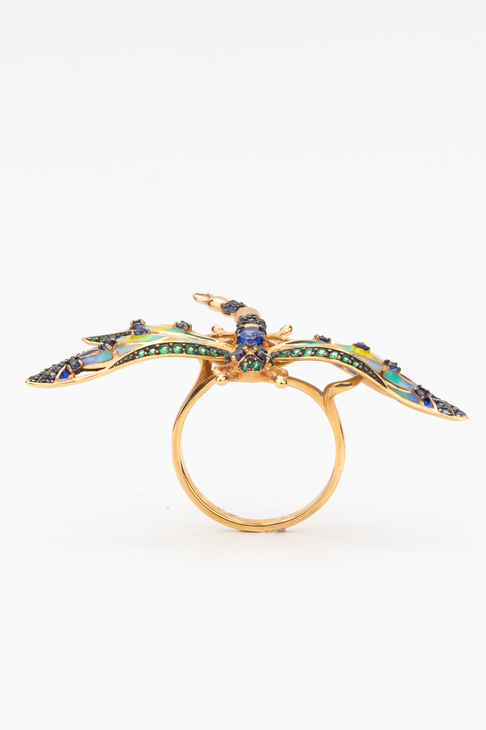Кольцо из золота c фианитом, сапфиром и эмалью