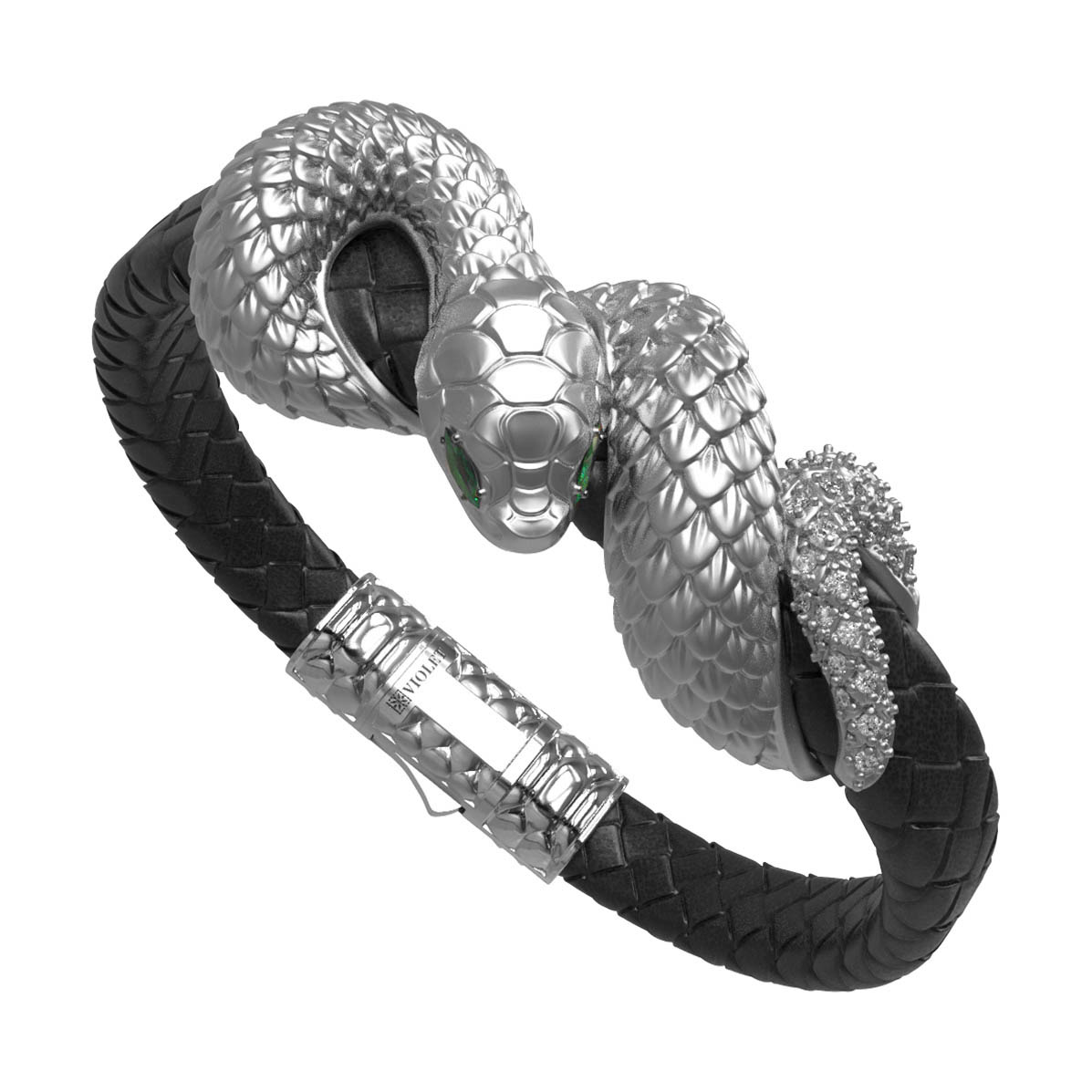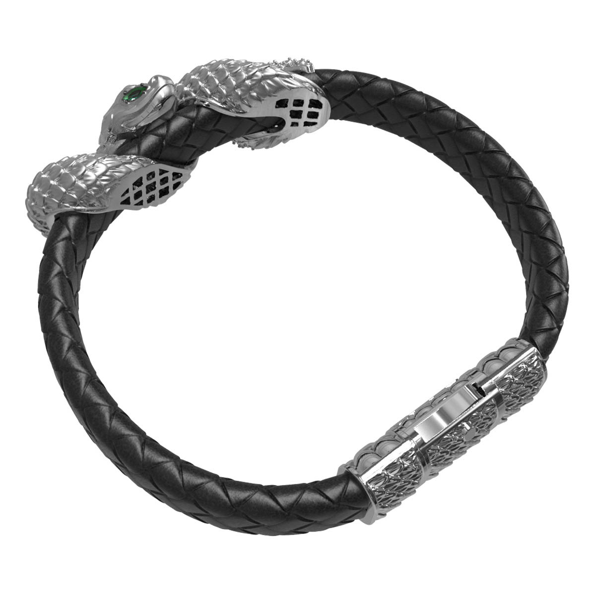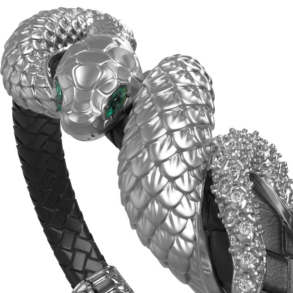 Браслет из белого золота c бриллиантами, изумрудом и шнурком