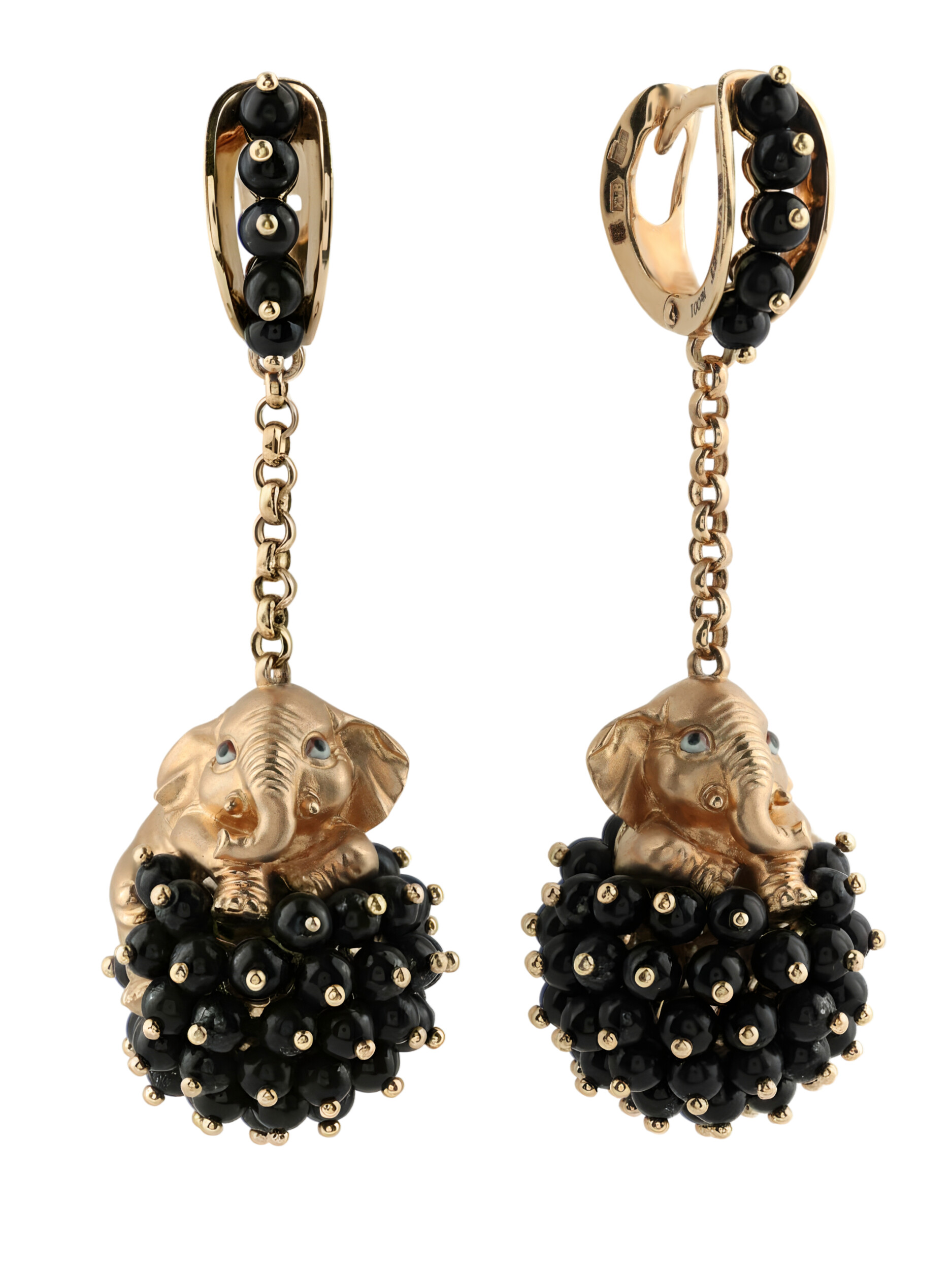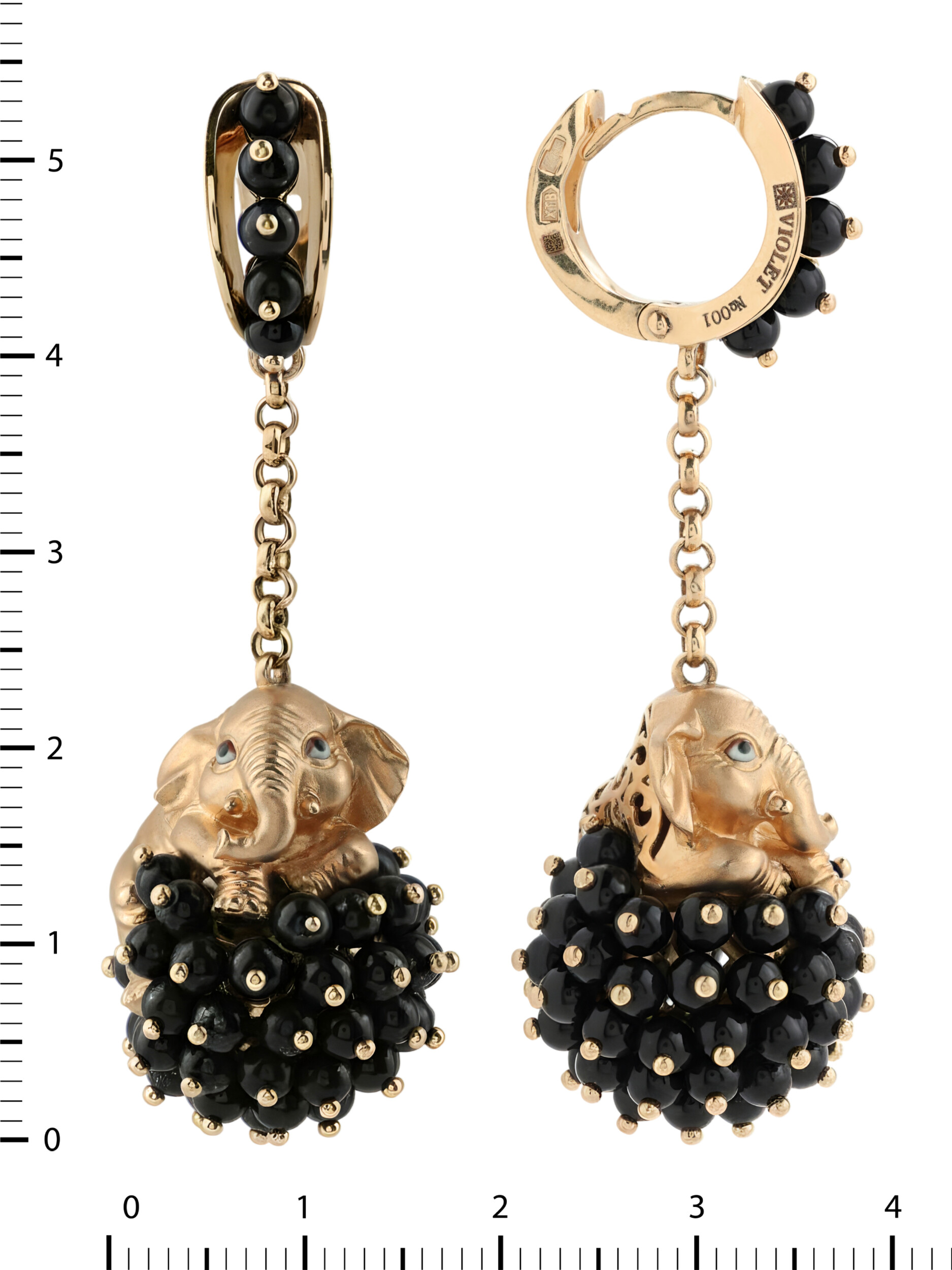 Серьги из золота c эмалью и ониксом