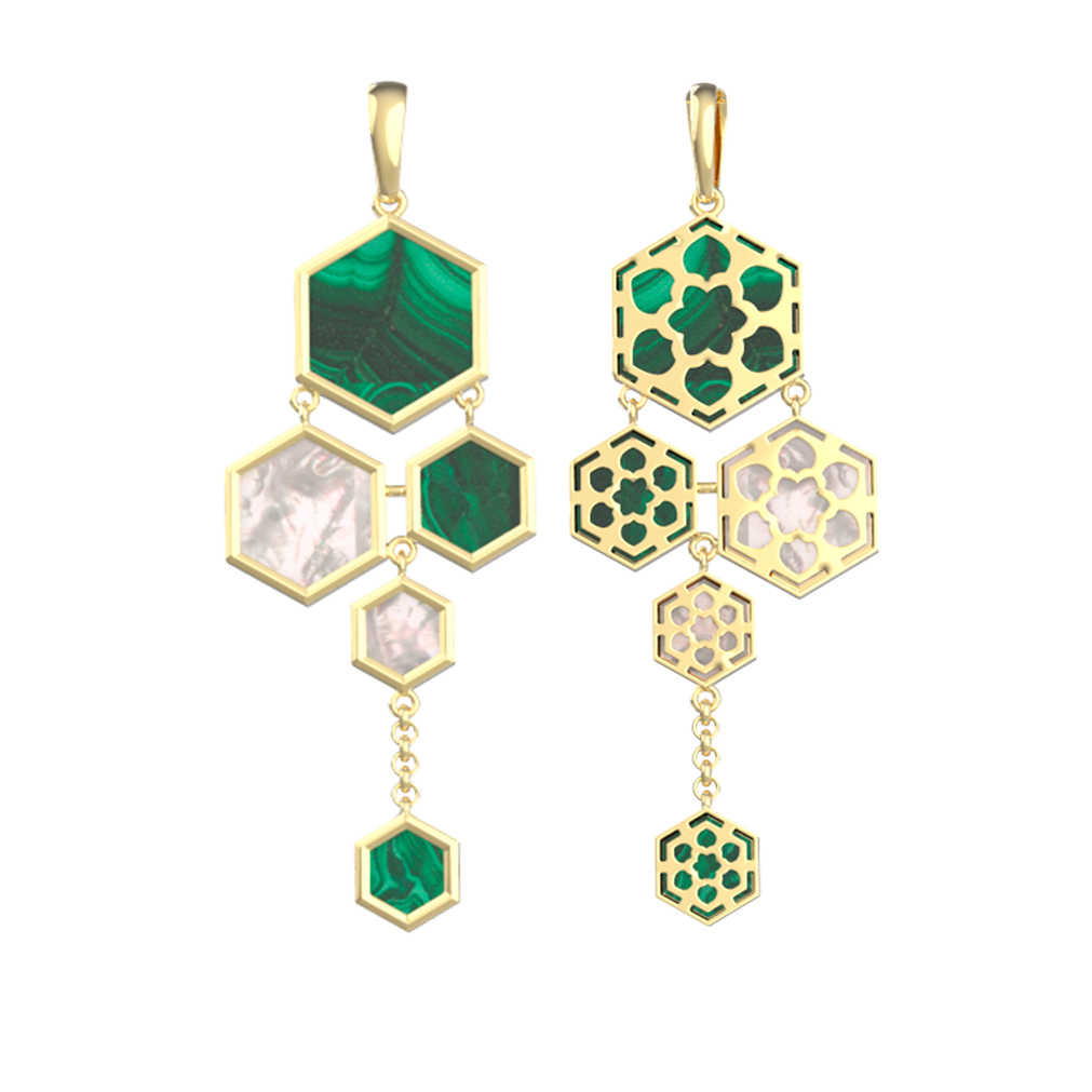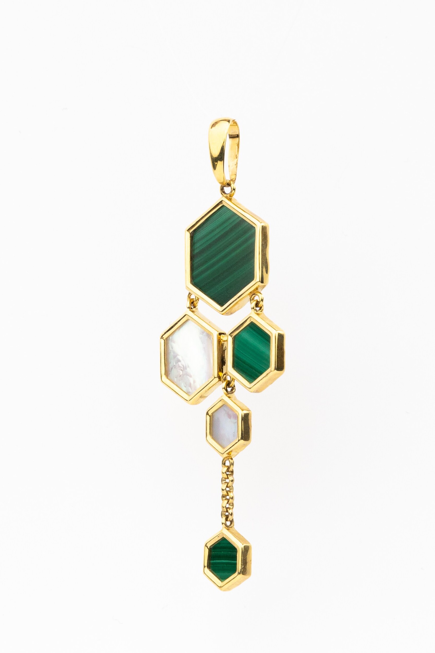 Подвеска из лимонного золота c малахитом и перламутром