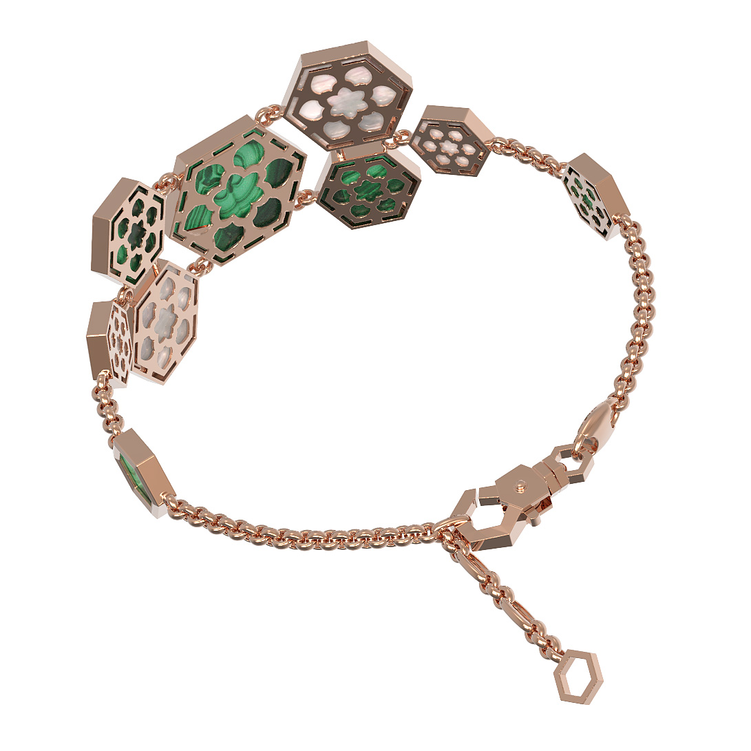 Браслет из золота c малахитом и перламутром