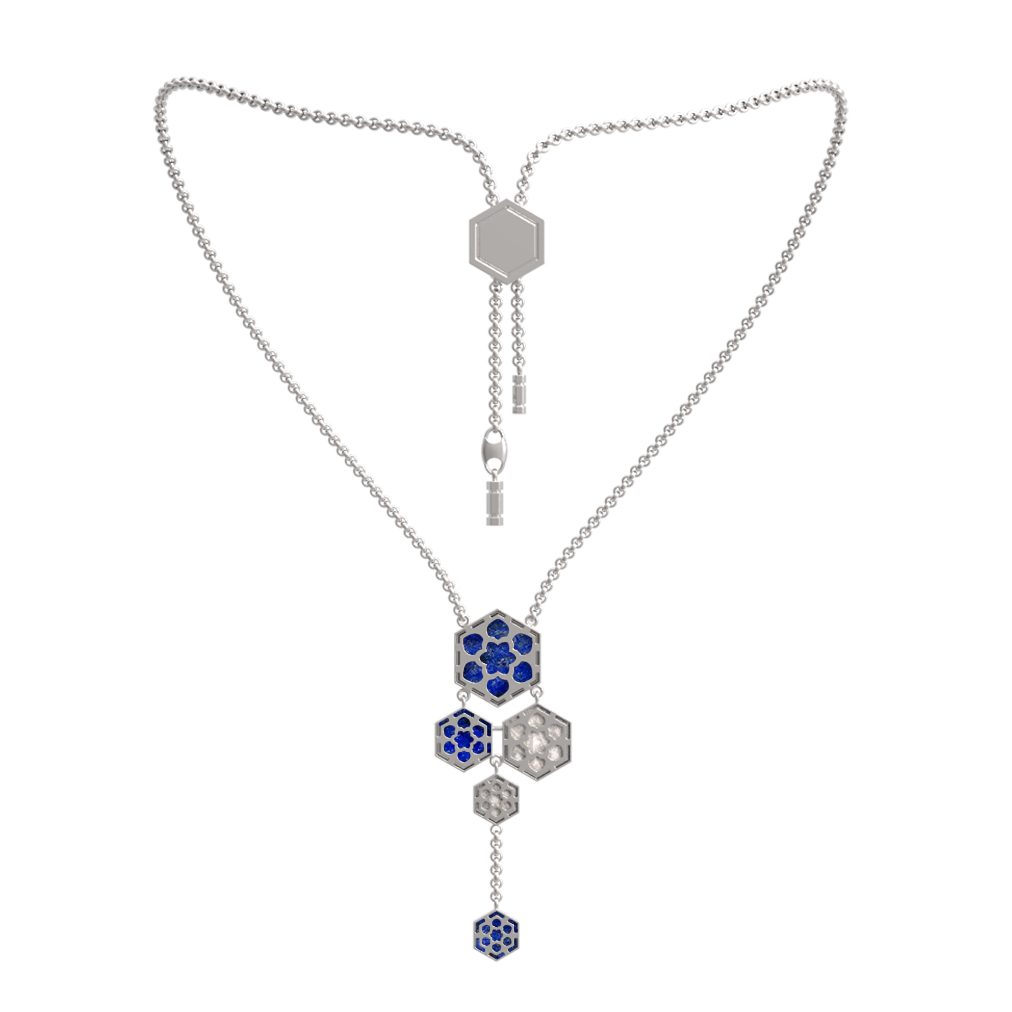 Колье из белого золота c лазуритом и перламутром