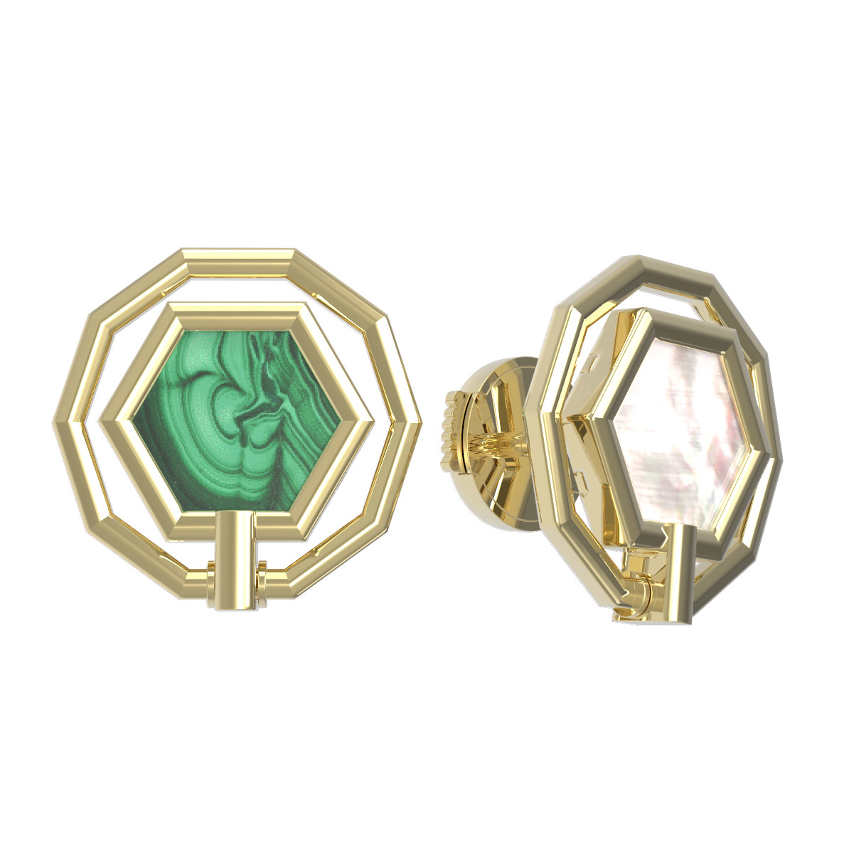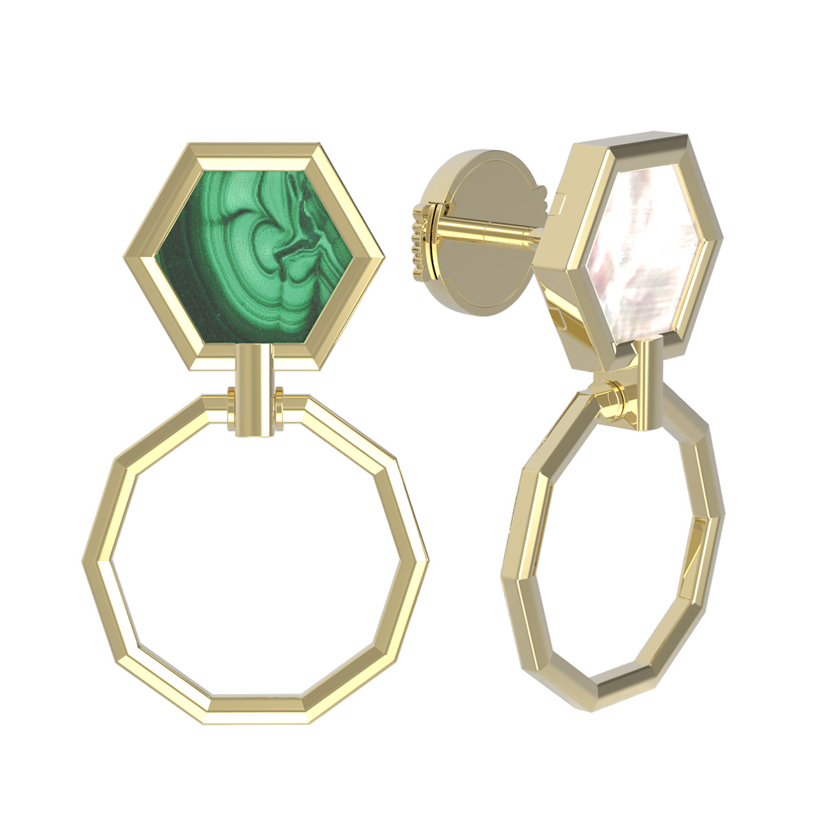 Серьги из лимонного золота c малахитом и перламутром