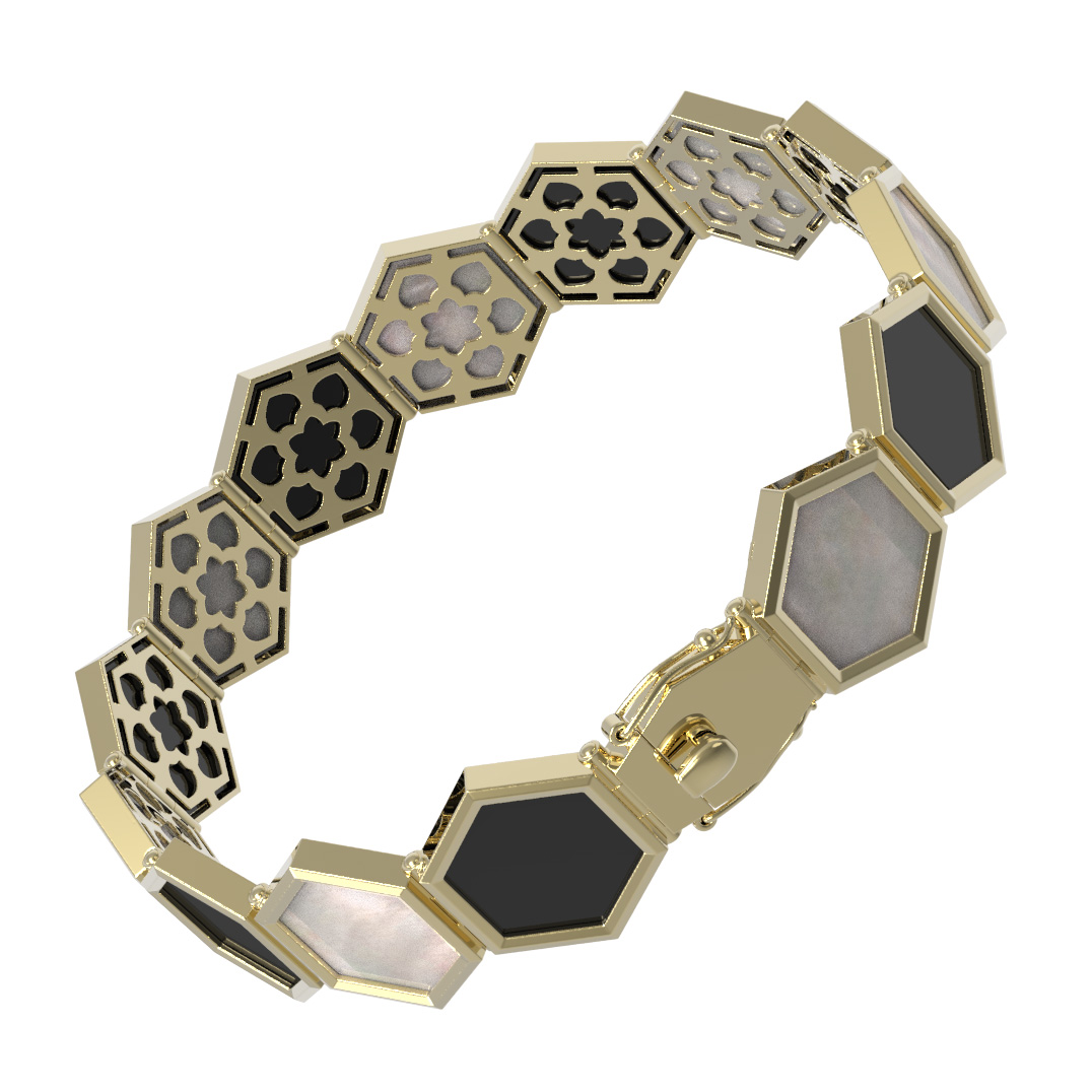 Браслет из лимонного золота c ониксом и перламутром