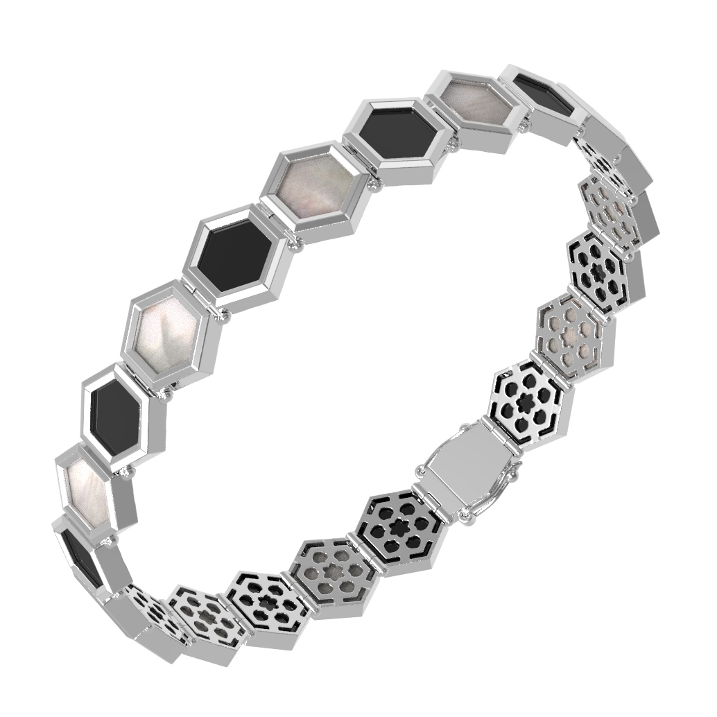 Браслет из белого золота c ониксом и перламутром