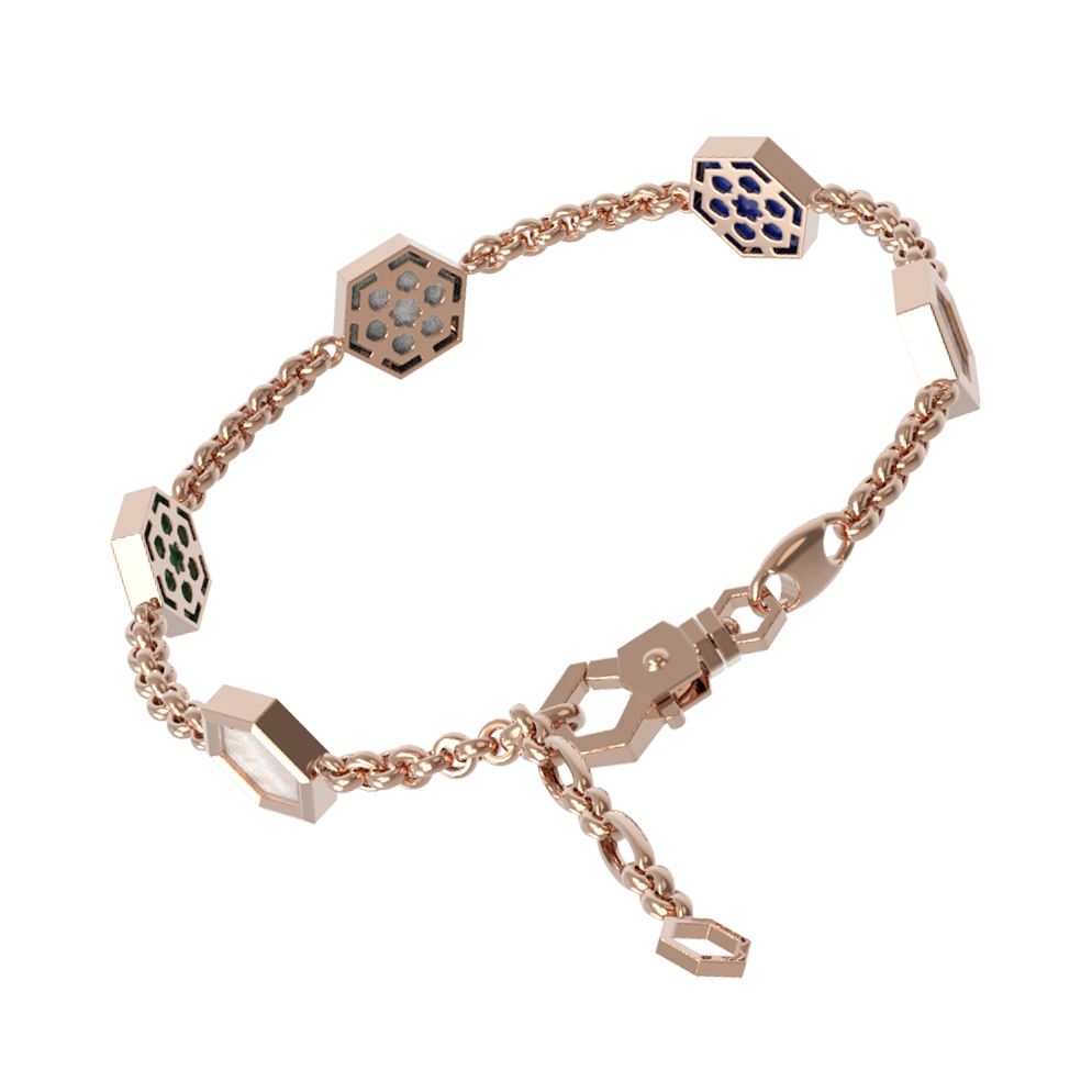 Браслет из золота c лазуритом, малахитом и перламутром