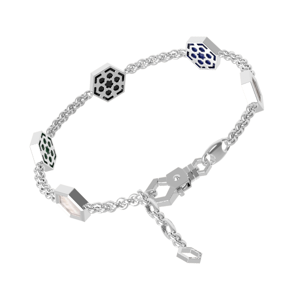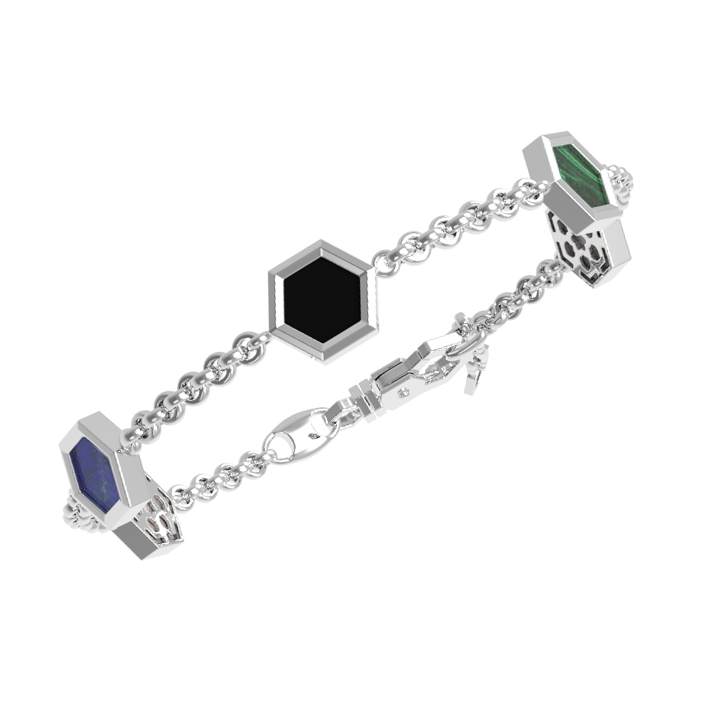 Браслет из белого золота c ониксом, лазуритом, малахитом и перламутром