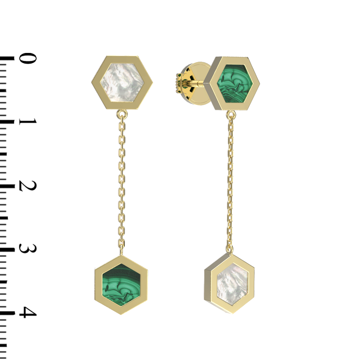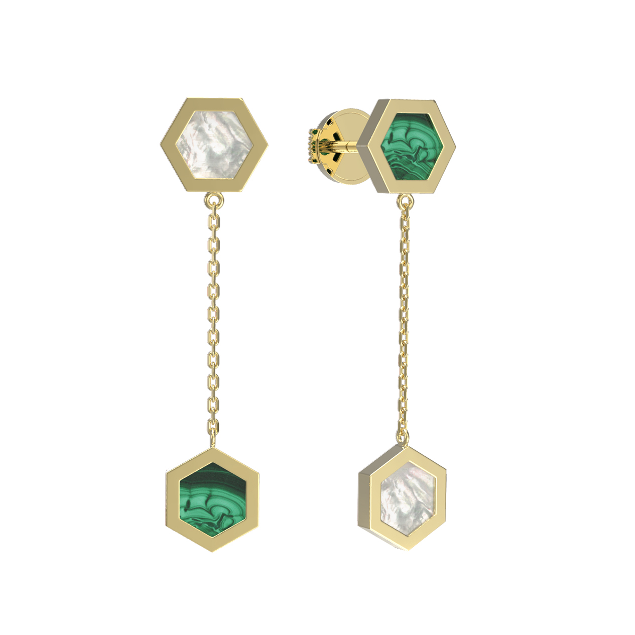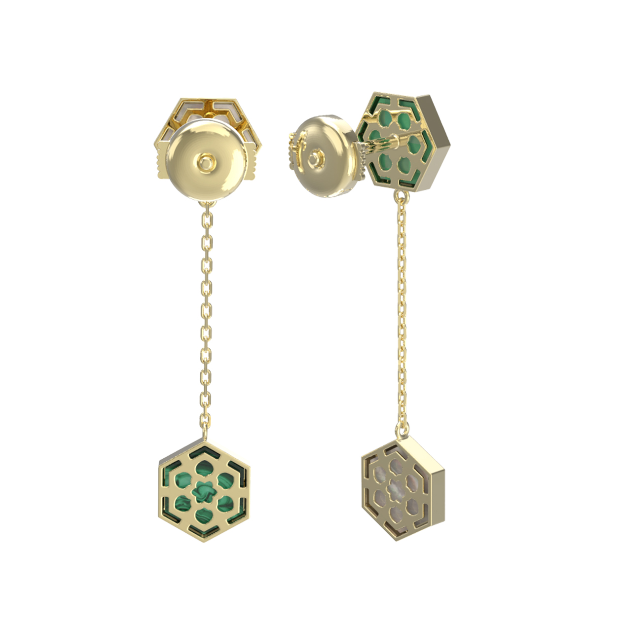 Серьги из лимонного золота c малахитом и перламутром