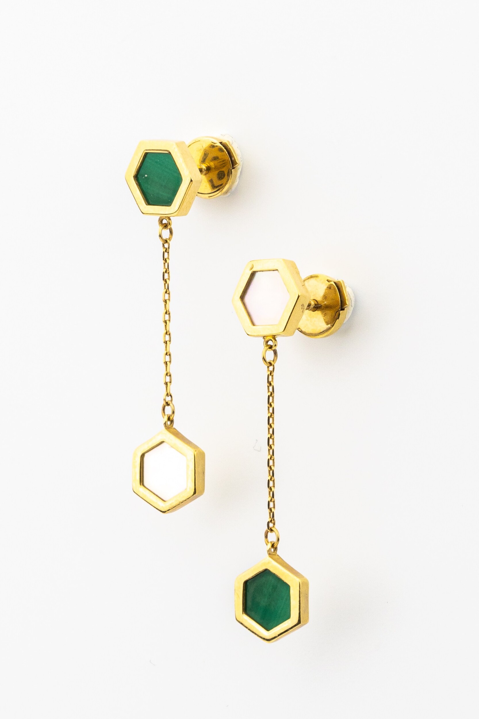 Серьги из лимонного золота c малахитом и перламутром