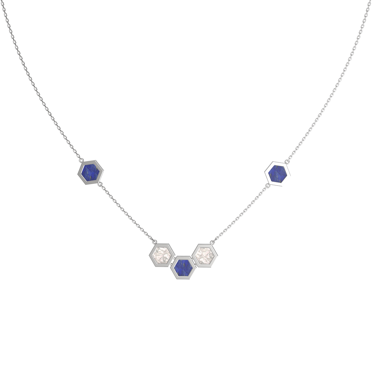 Колье из белого золота c лазуритом и перламутром