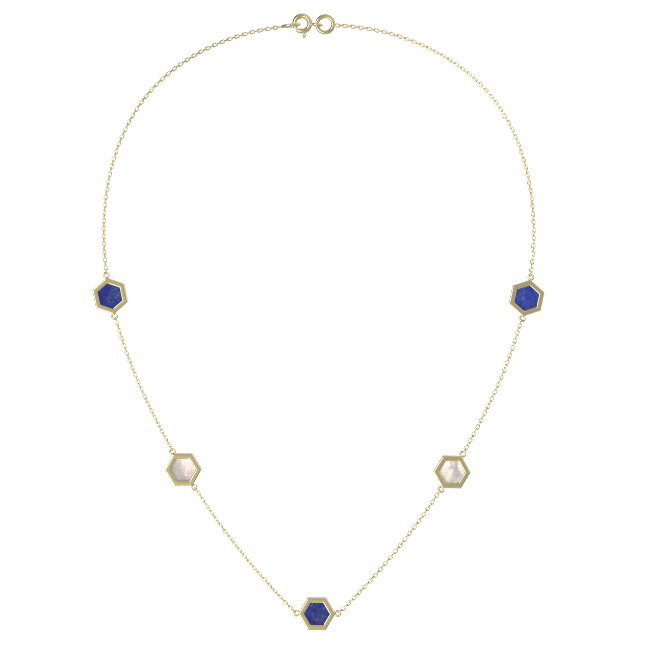 Колье из лимонного золота c лазуритом и перламутром