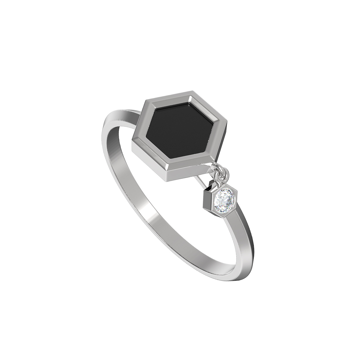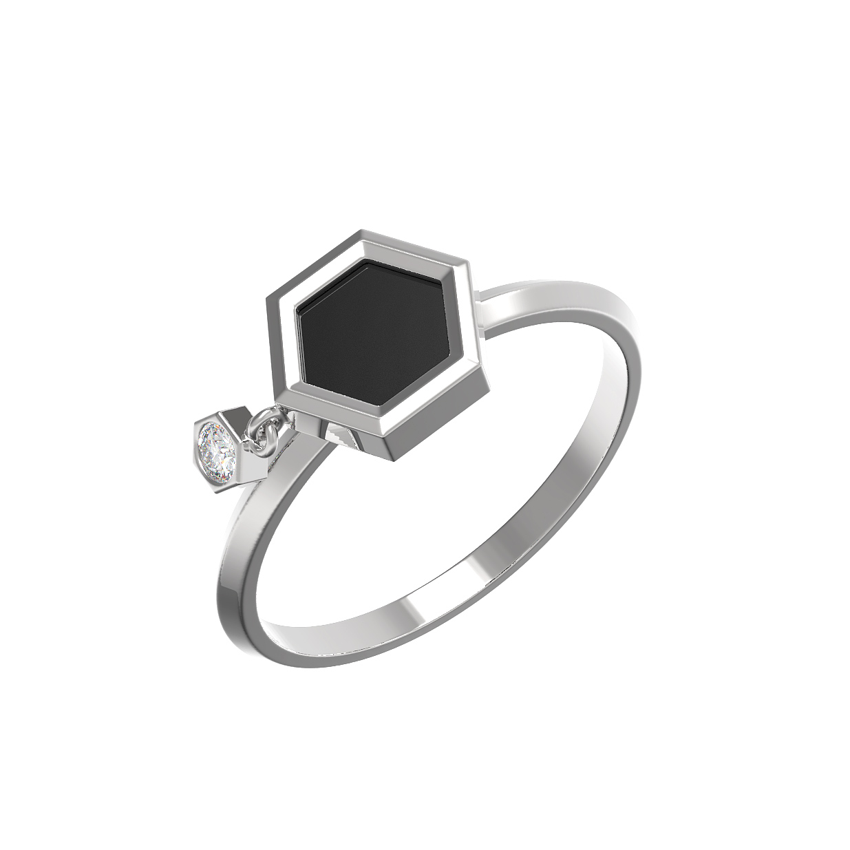 Кольцо из белого золота c бриллиантами и ониксом