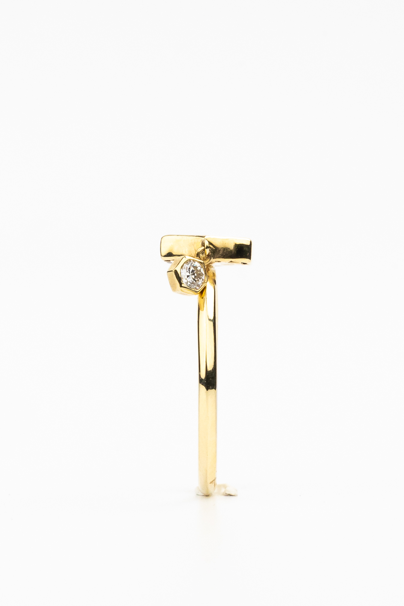 Кольцо из лимонного золота c бриллиантами и перламутром