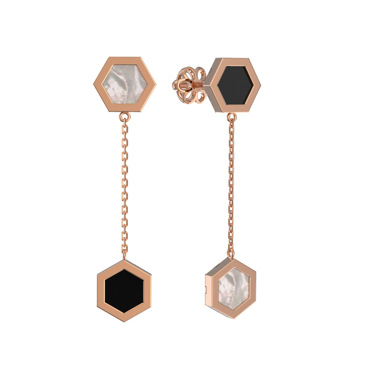 Серьги из золота c ониксом и перламутром