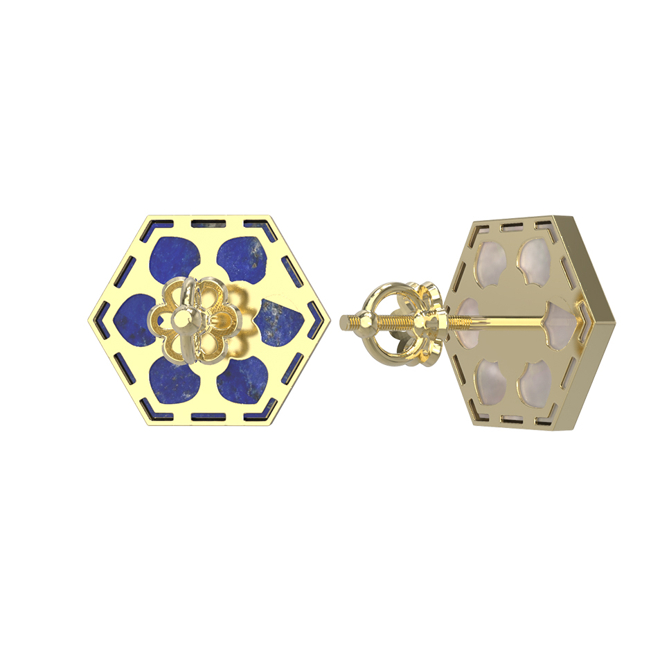 Серьги из лимонного золота c лазуритом и перламутром