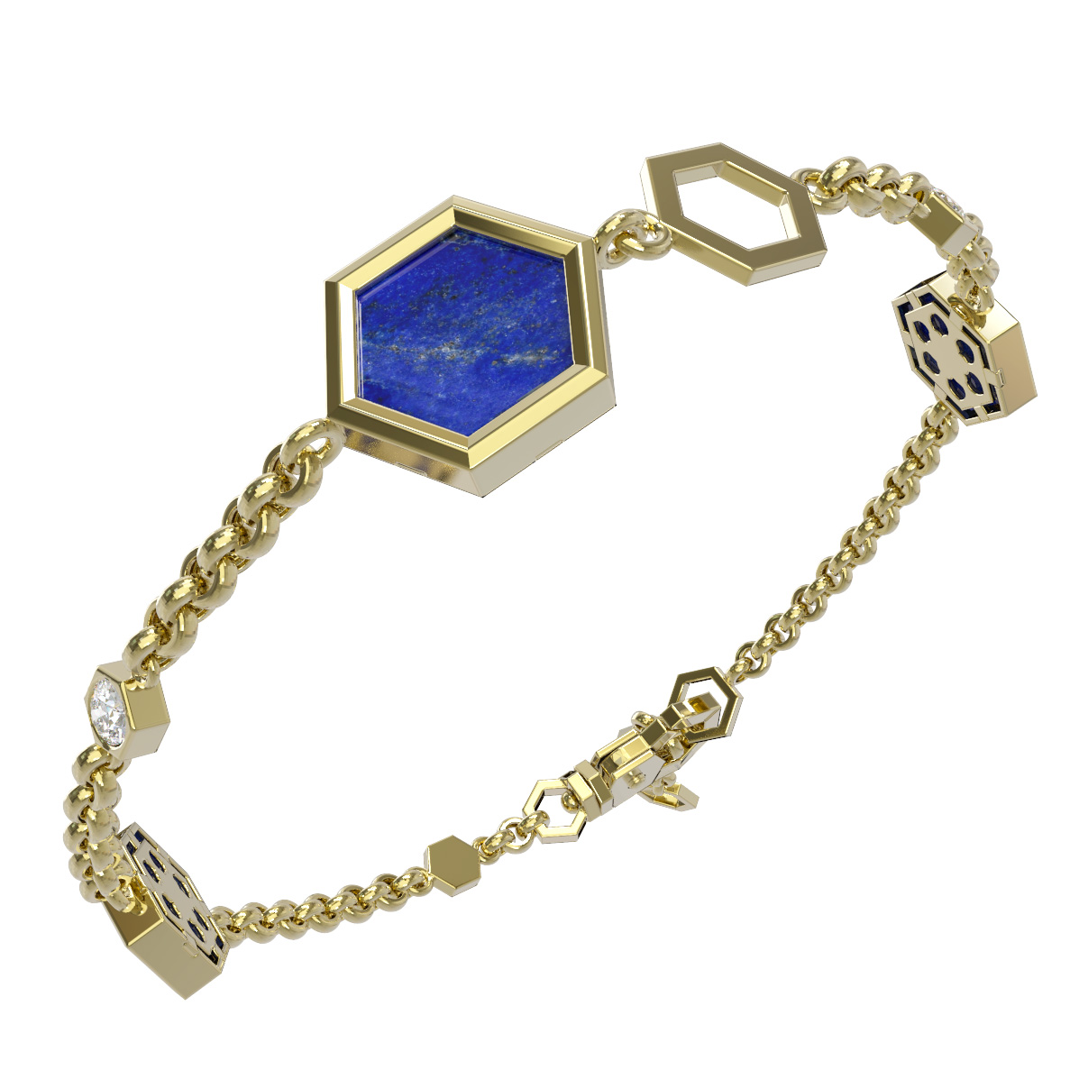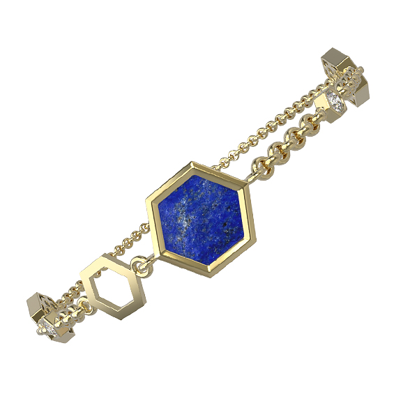 Браслет из лимонного золота c бриллиантами, лазуритом и перламутром