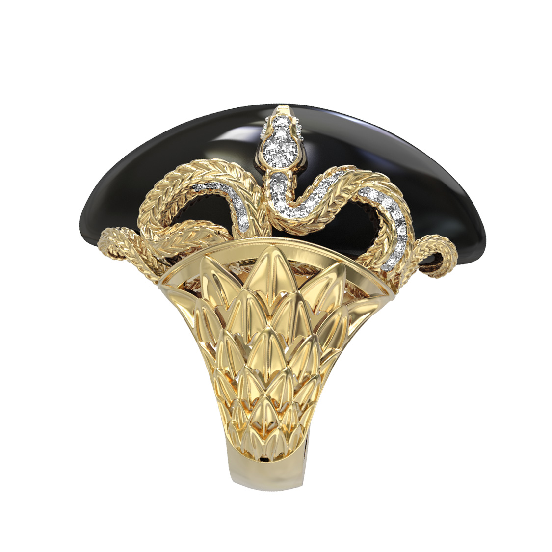 Кольцо из лимонного золота c бриллиантами и ониксом