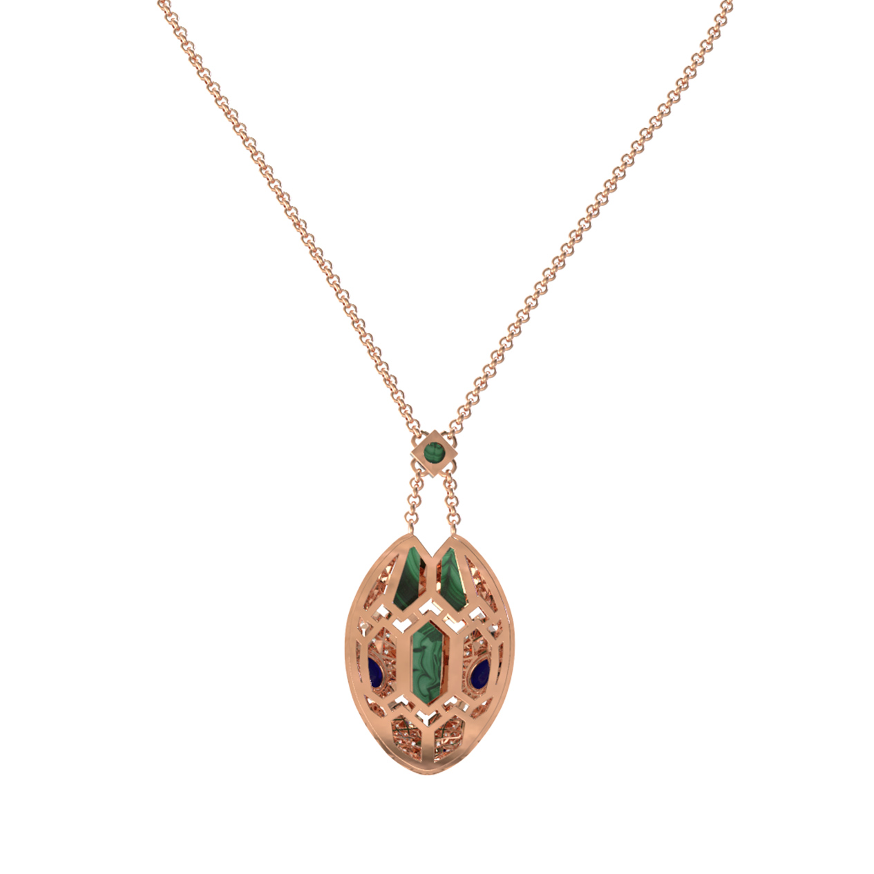Колье из золота c бриллиантами, сапфиром и малахитом