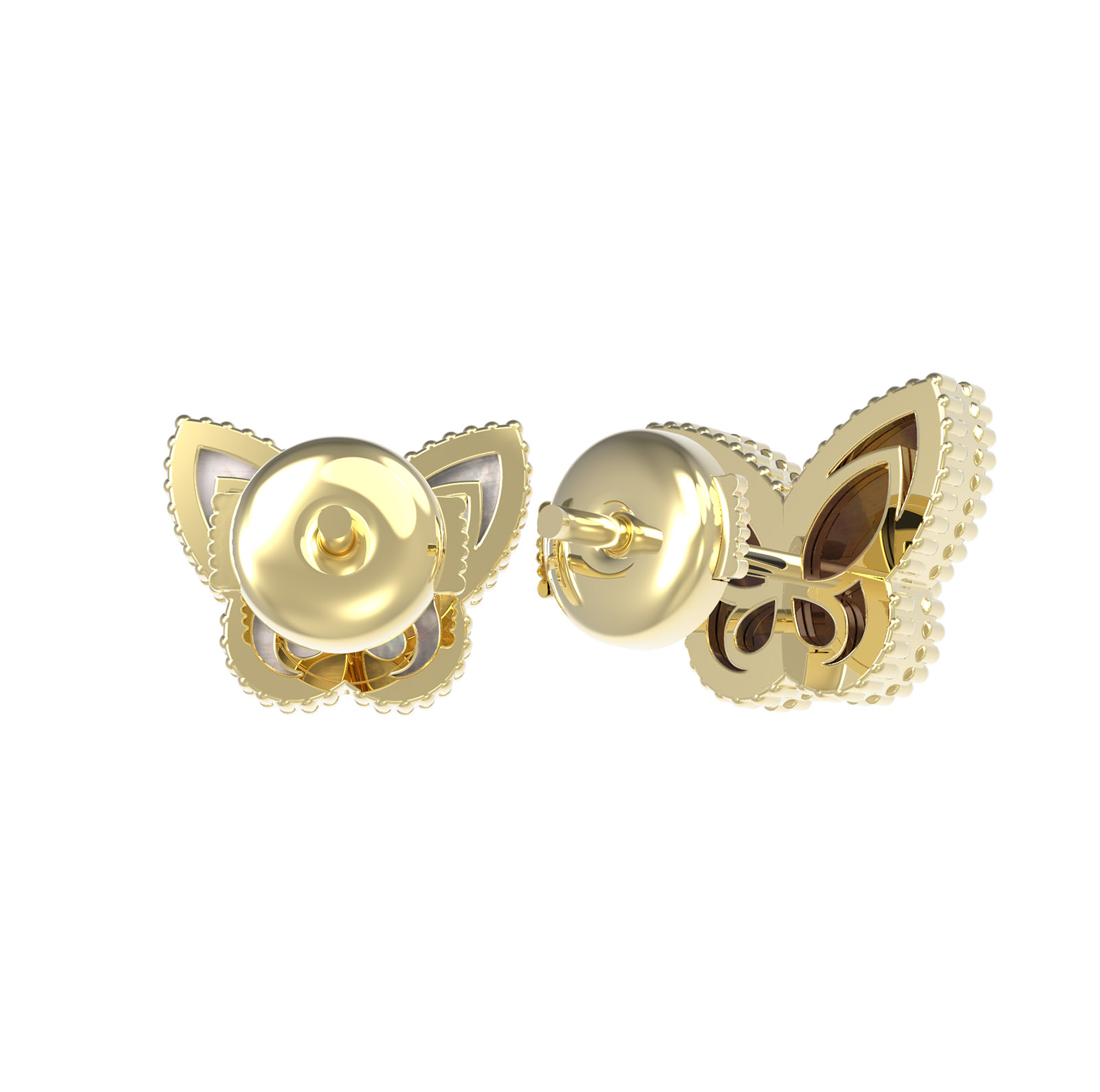 Серьги из лимонного золота c тигровым глазом и перламутром
