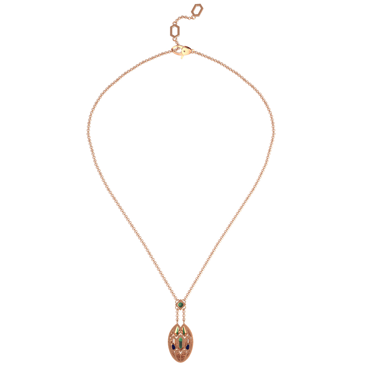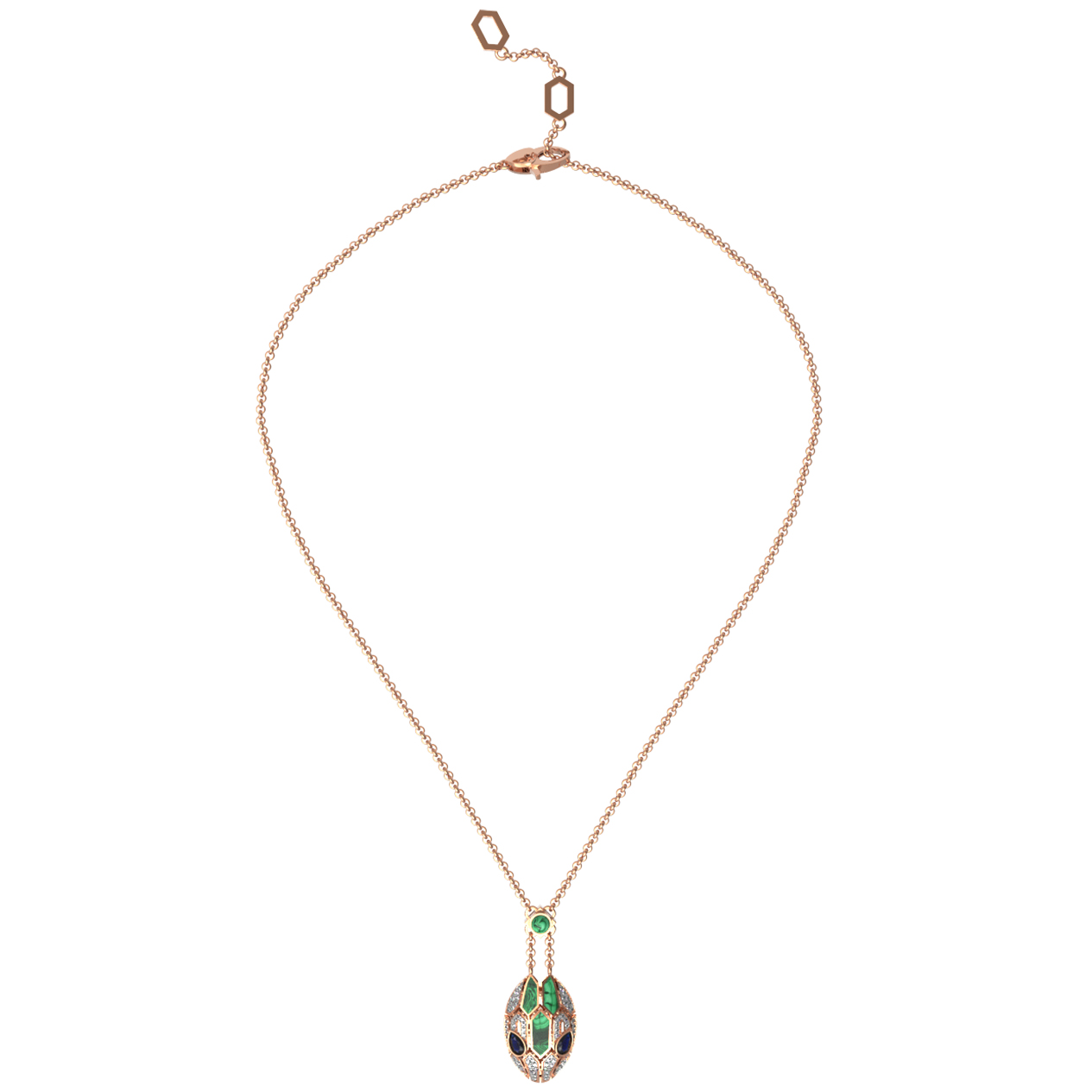 Колье из золота c бриллиантами, сапфиром и малахитом