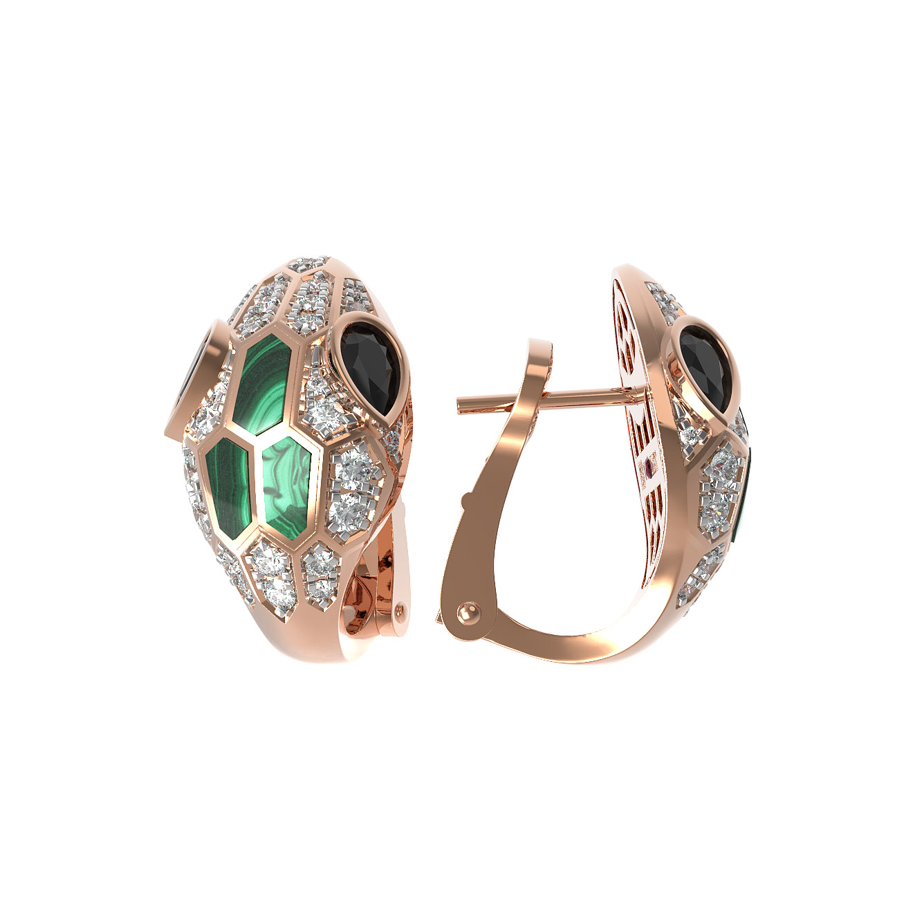 Серьги из золота c бриллиантами, сапфиром и малахитом