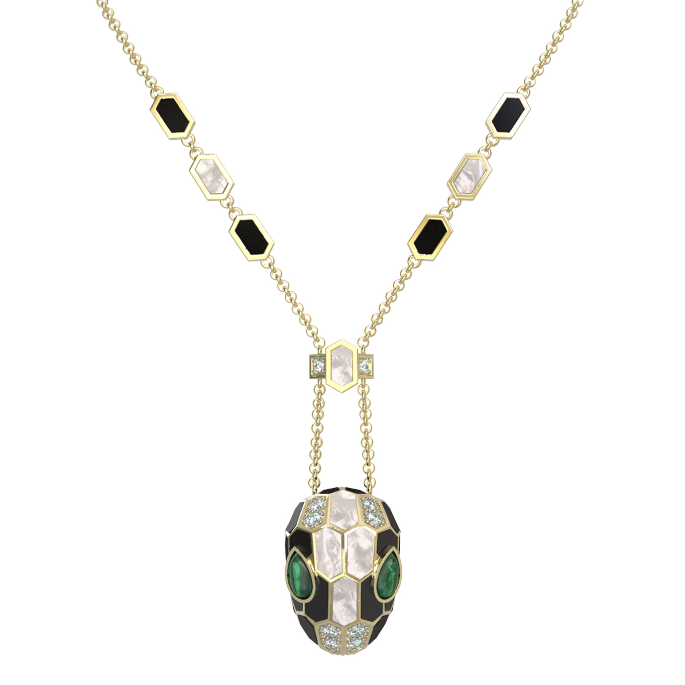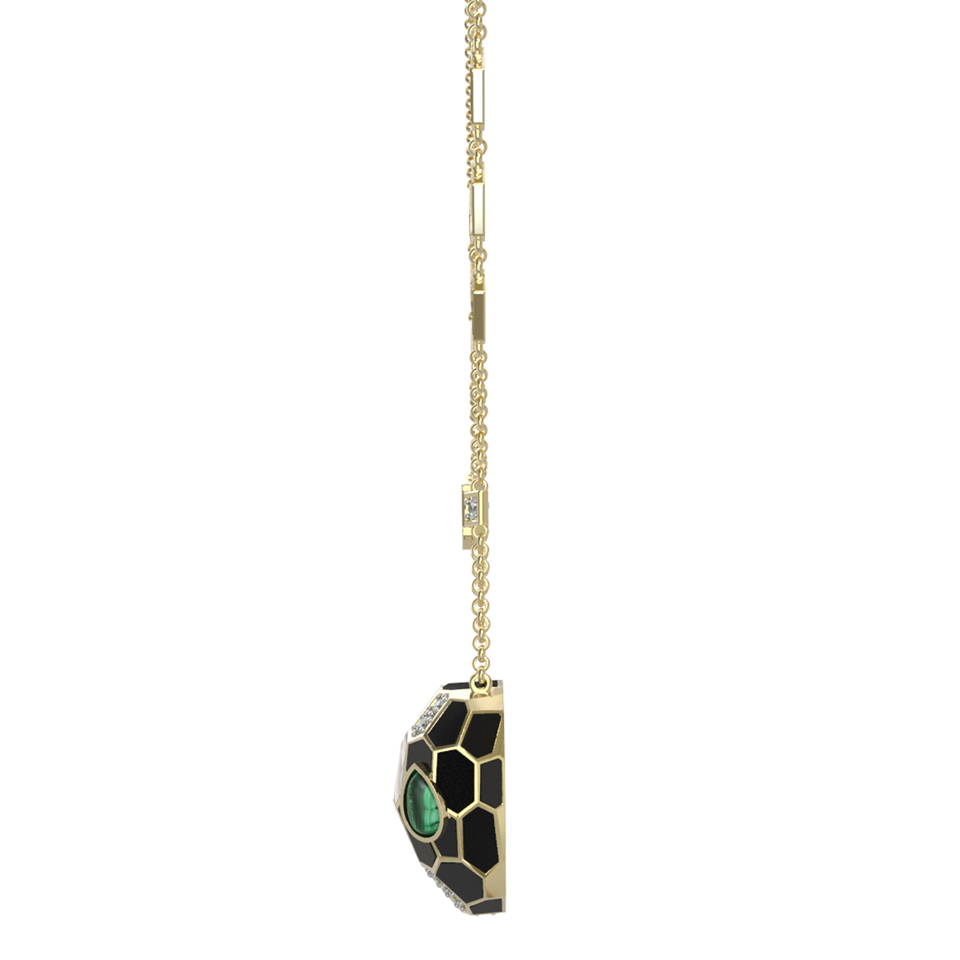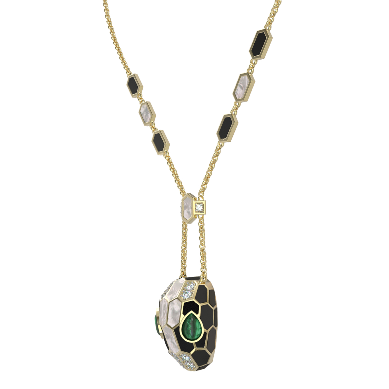 Колье из лимонного золота c бриллиантами, рубином, ониксом, малахитом и перламутром
