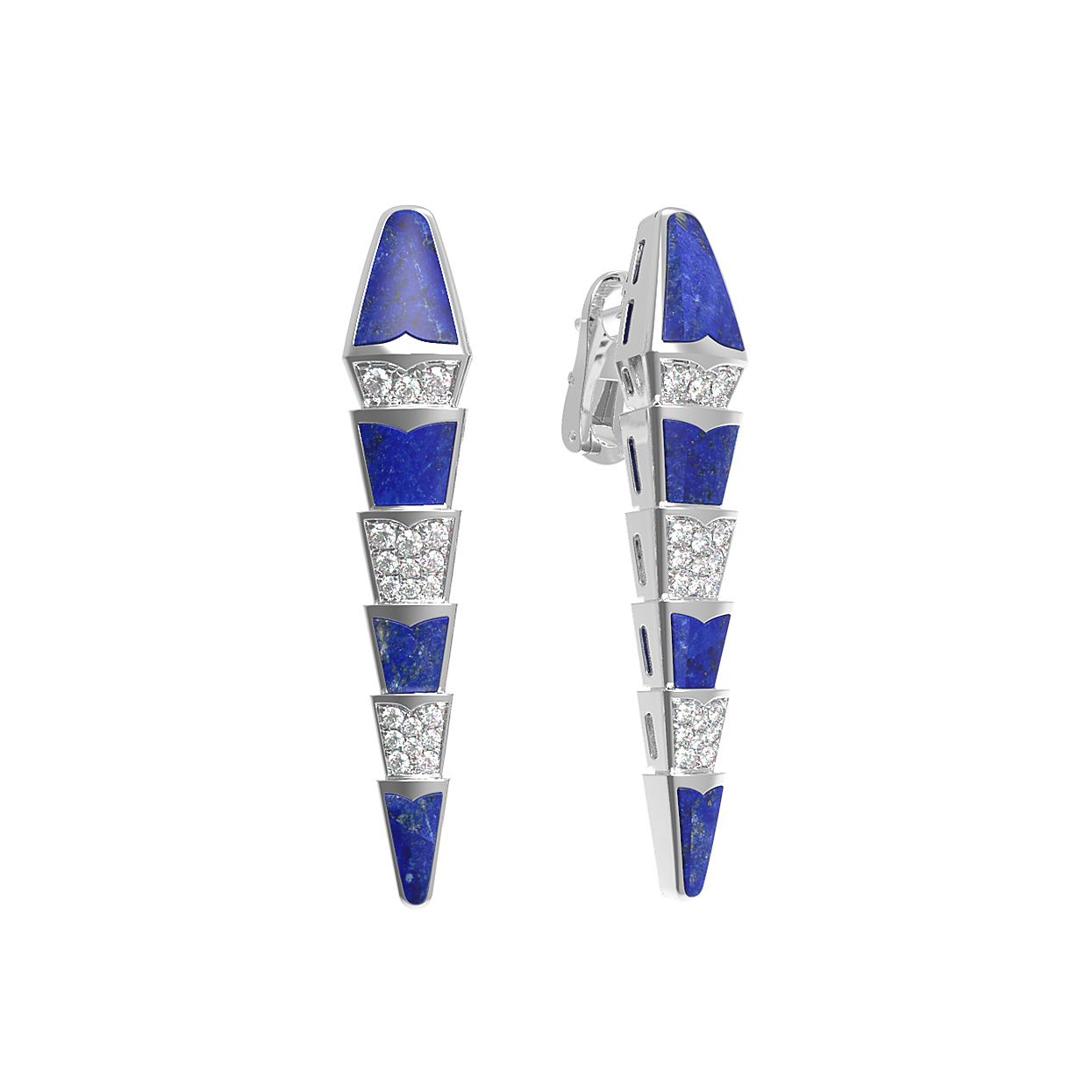 Серьги из белого золота c бриллиантами и лазуритом
