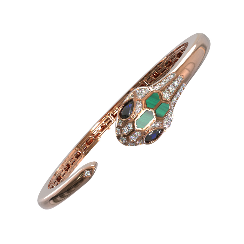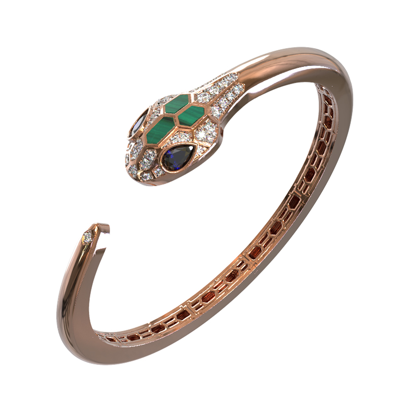 Браслет из золота c бриллиантами, сапфиром и малахитом