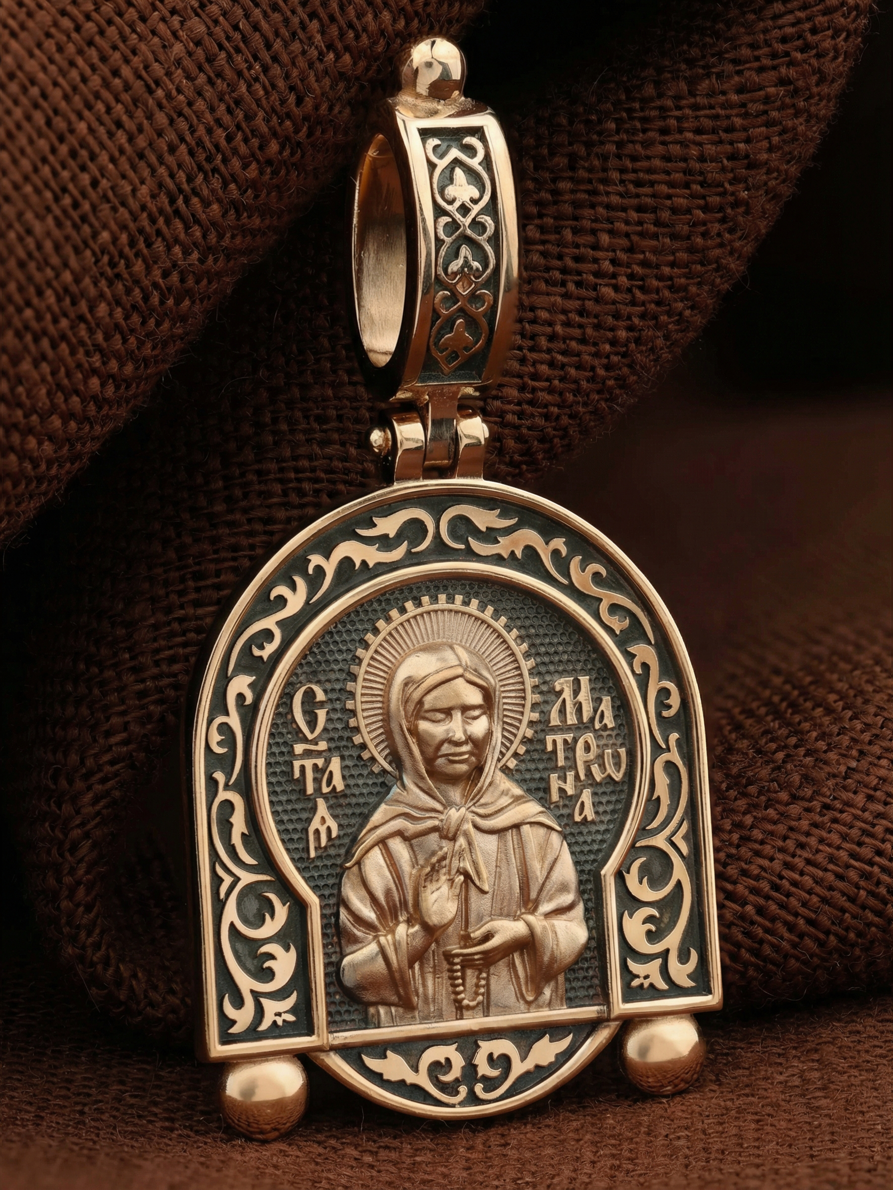 На лицевой стороне образка изображена Святая Матрона Московская.