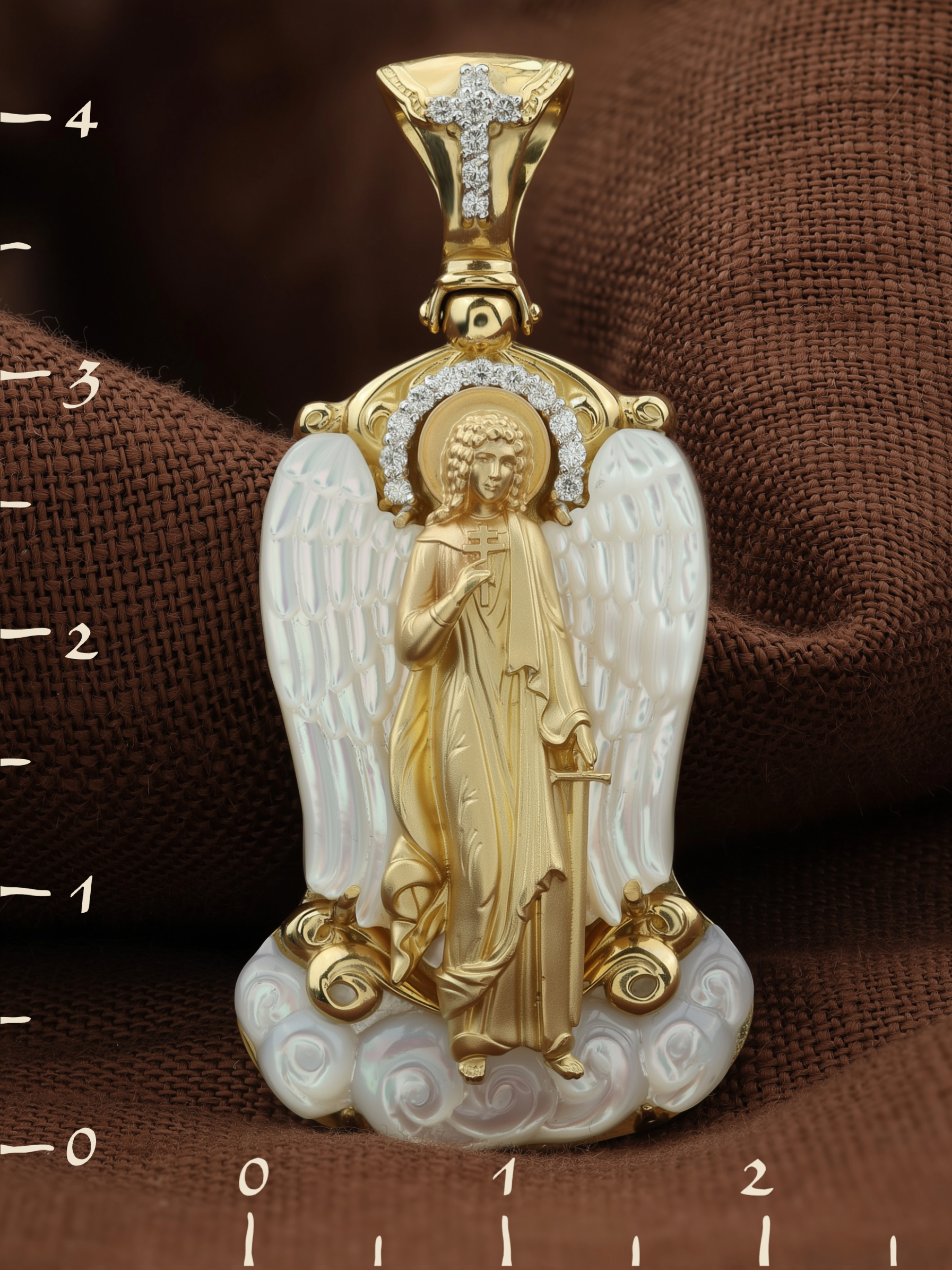 На лицевой стороне образка изображен Святой Ангел-Хранитель держащий в правой руке крест, а в левой — мечь. Ангел-Хранитель — это Ангел приставляемый Богом к человеку при крещении для охраны и помощи в добрых делах. Всё, что есть в нас доброго, чистого, светлого: всякая хорошая мысль, всякое доброе движение сердца, наша молитва, покаяние, добрые дела — всё это в нас рождается и совершается по внушению незримого нашего Ангела-Хранителя. Действуя через нашу совесть и наше сердце, это он, наш Ангел, удерживает нас от греха и соблазна, это он помогает нам бороться с искушениями, это он внушает нам страх пред тяжким грехопадением. Ангел, будучи служителем любви и мира, радуется о нашем покаянии и преуспеянии в добродетели, старается наполнять нас духовными созерцаниями (по мере нашей восприимчивости) и содействует нам во всяком добре. И, если мы сами не оттолкнём его от себя во время нашей земной жизни, он поведёт нашу душу и на поклонение Богу, когда наступит время разлучиться душе с телом.