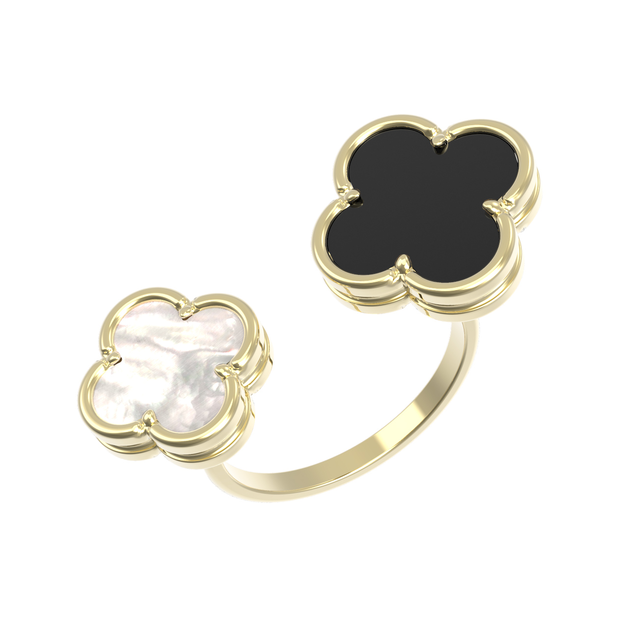Кольцо из лимонного золота c ониксом и перламутром