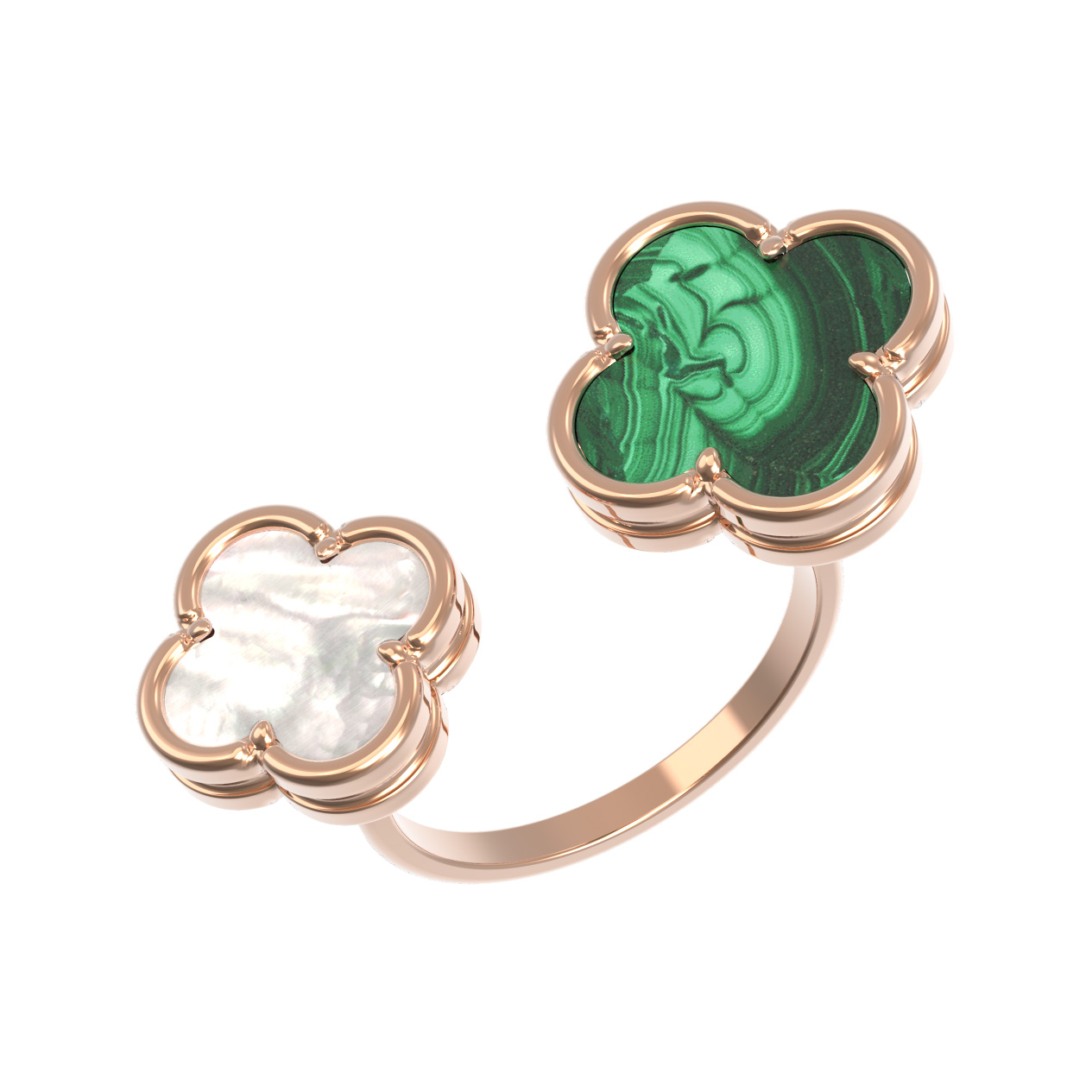 Кольцо из золота c малахитом и перламутром