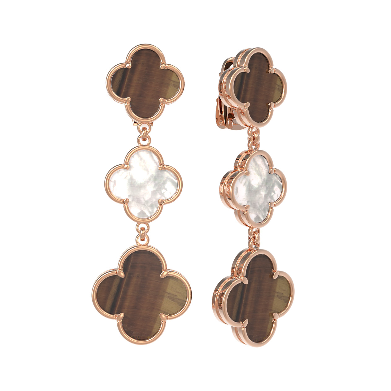 Серьги из золота c тигровым глазом и перламутром