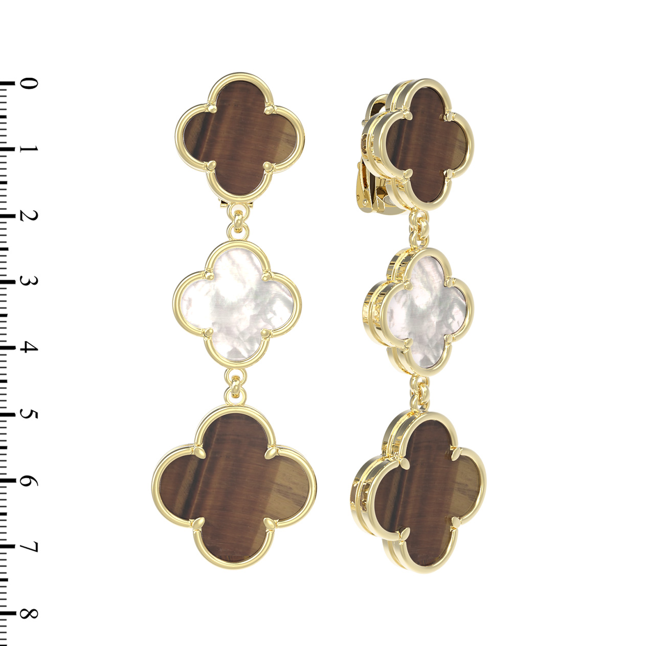 Серьги из лимонного золота c тигровым глазом и перламутром