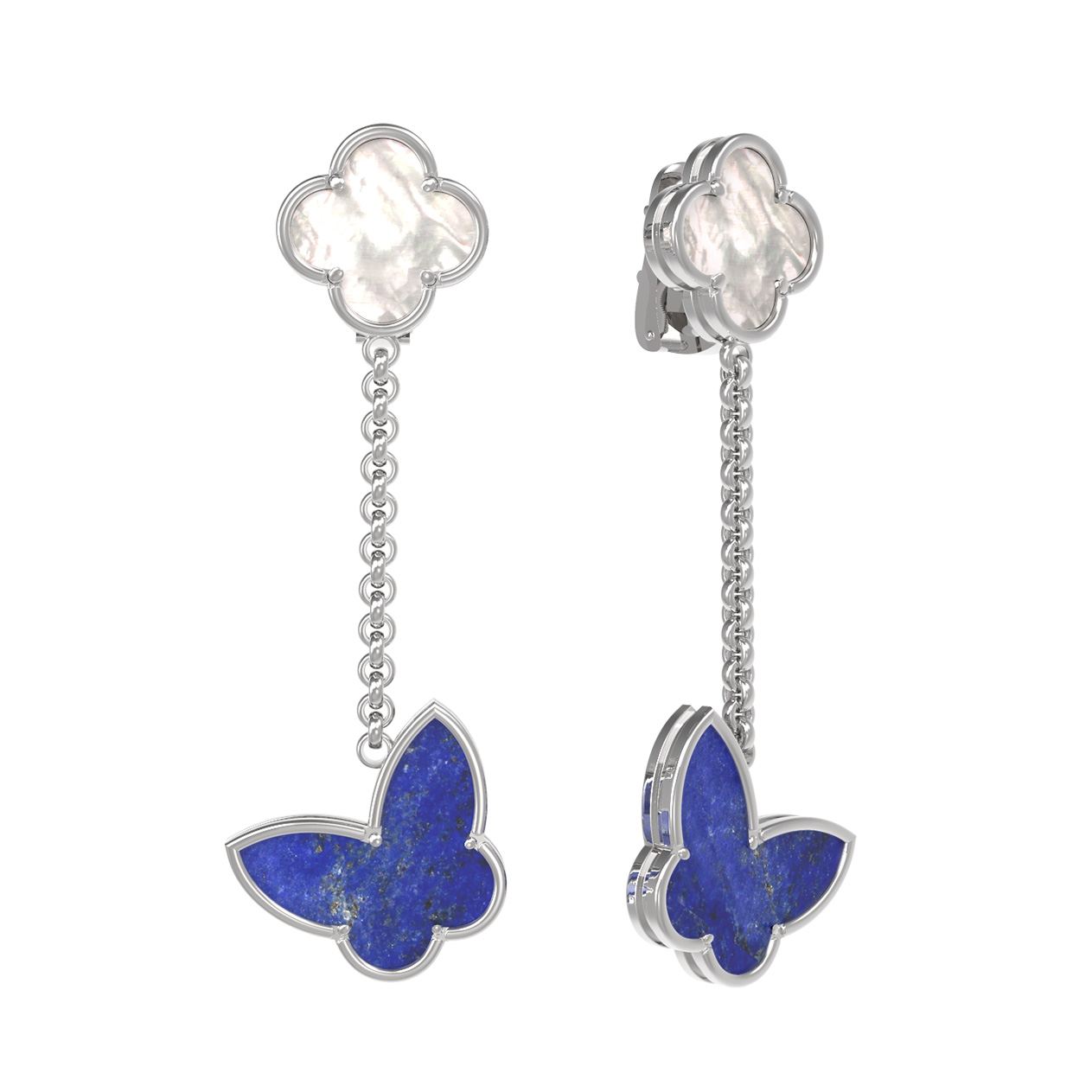 Серьги из белого золота c лазуритом и перламутром