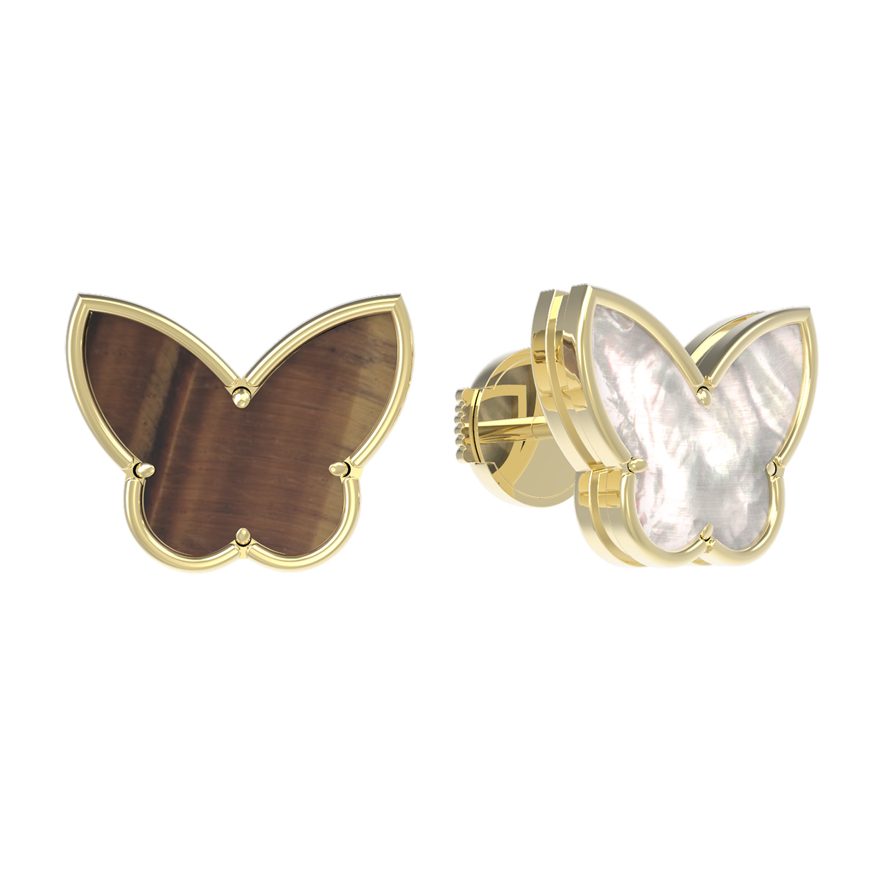 Серьги из лимонного золота c тигровым глазом и перламутром