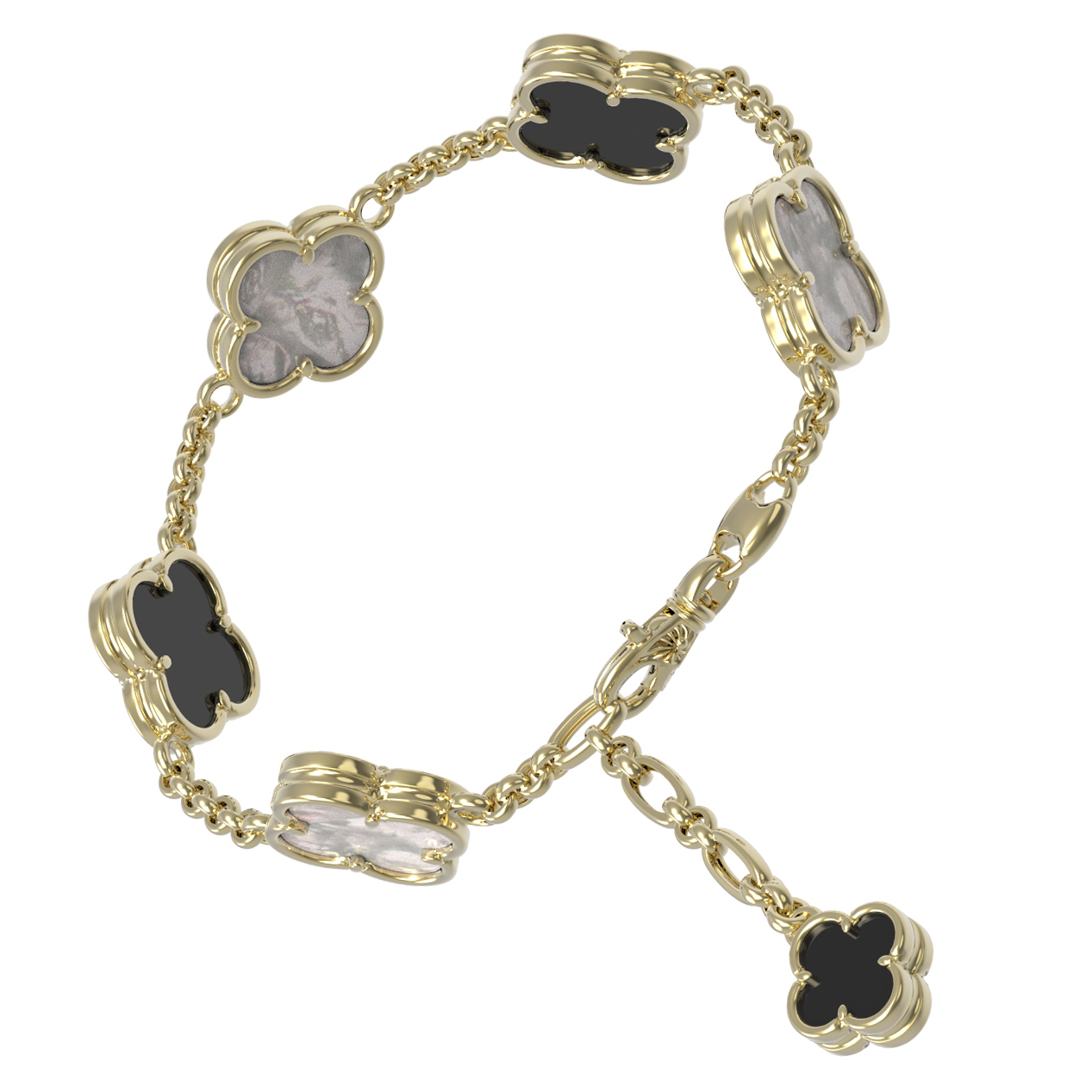Браслет из лимонного золота c ониксом и перламутром