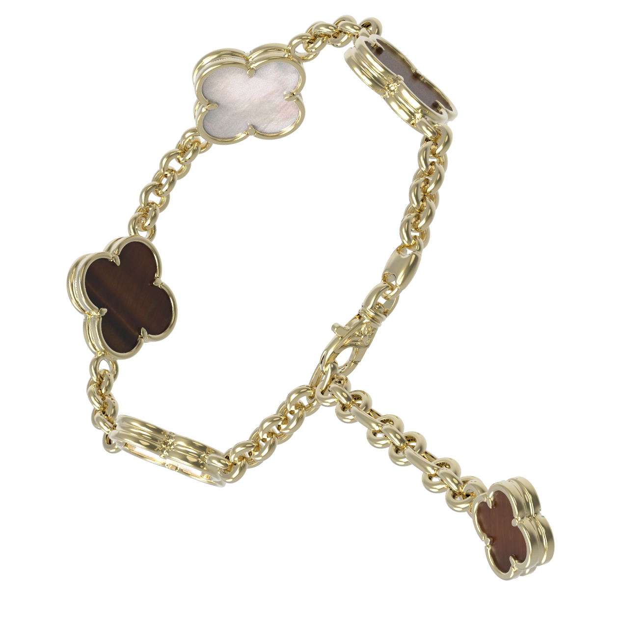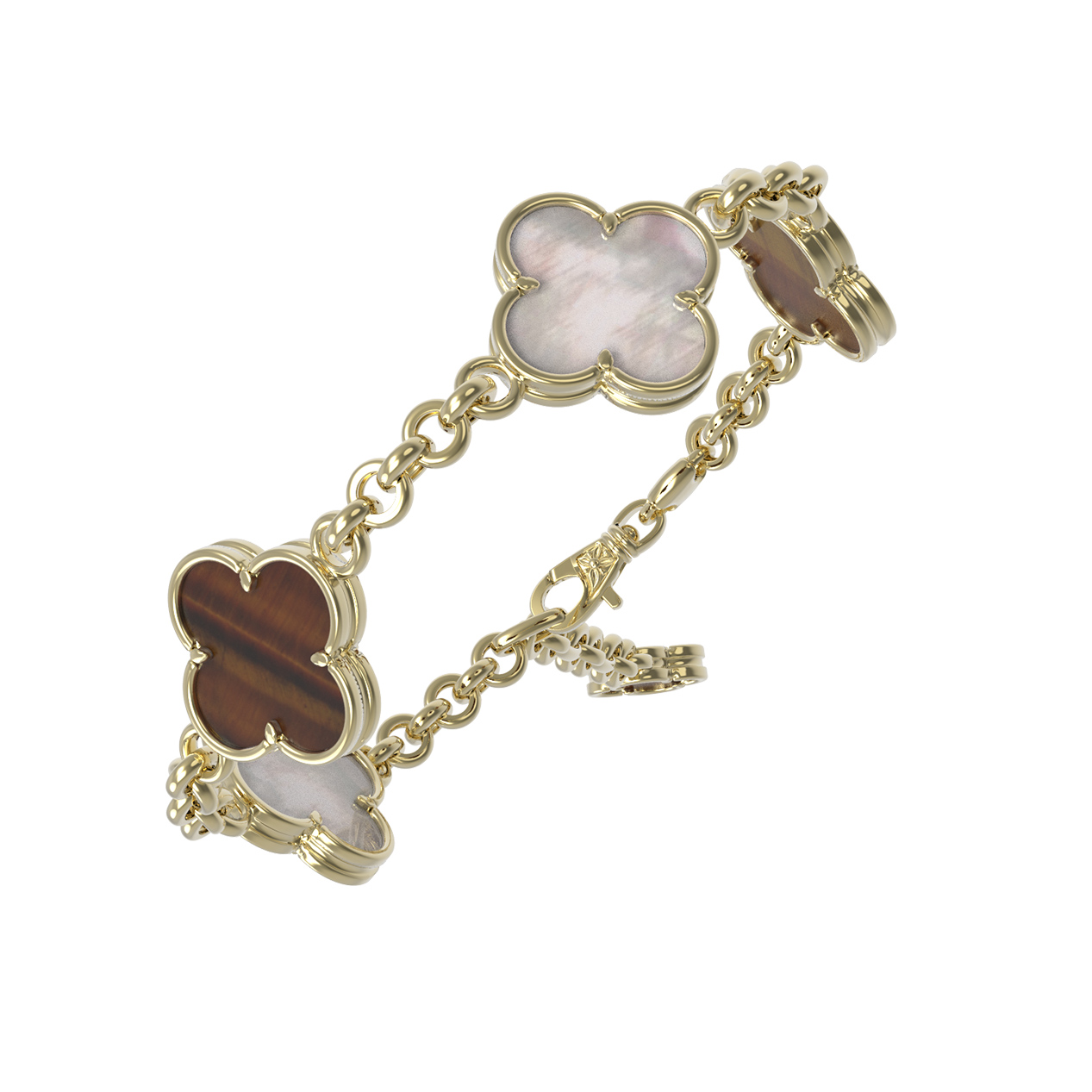 Браслет из лимонного золота c тигровым глазом и перламутром
