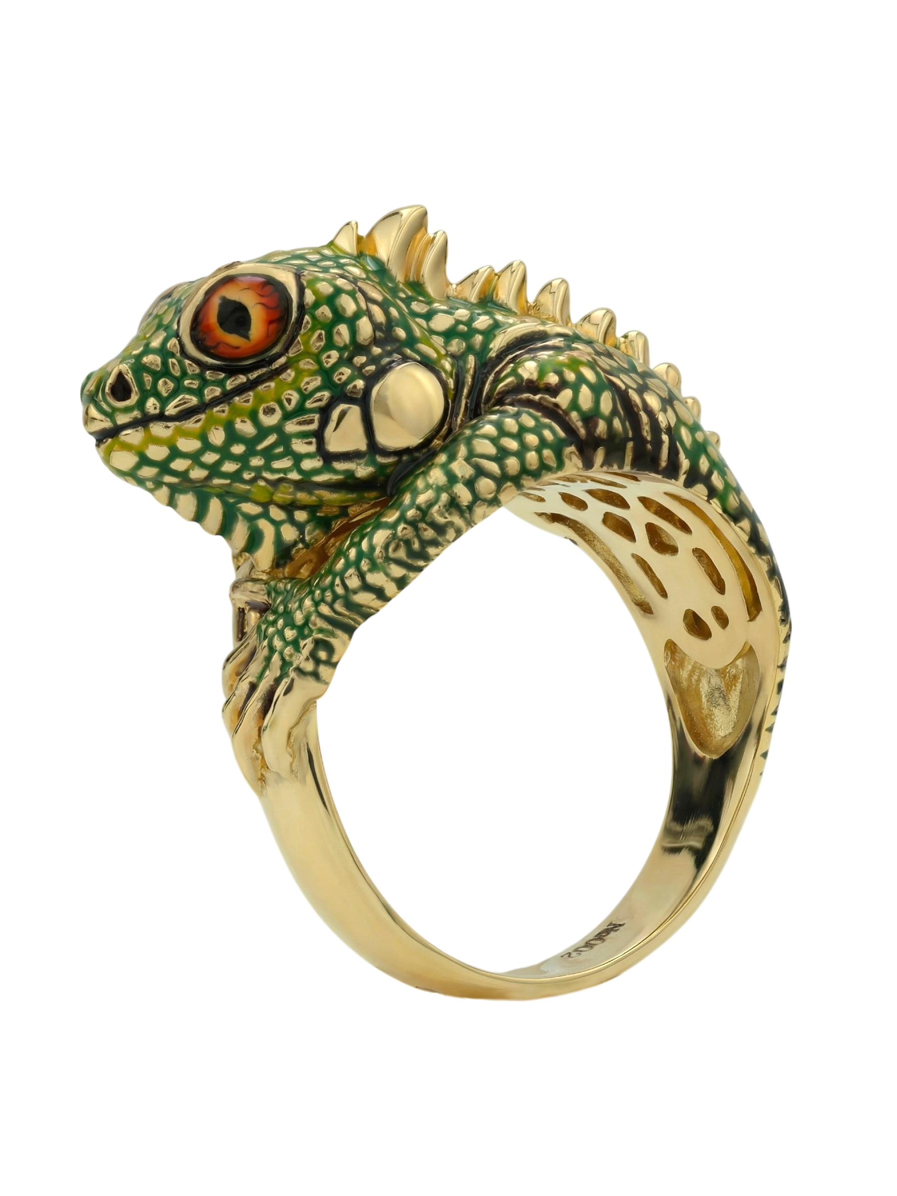 Кольцо из лимонного золота c эмалью и рубином