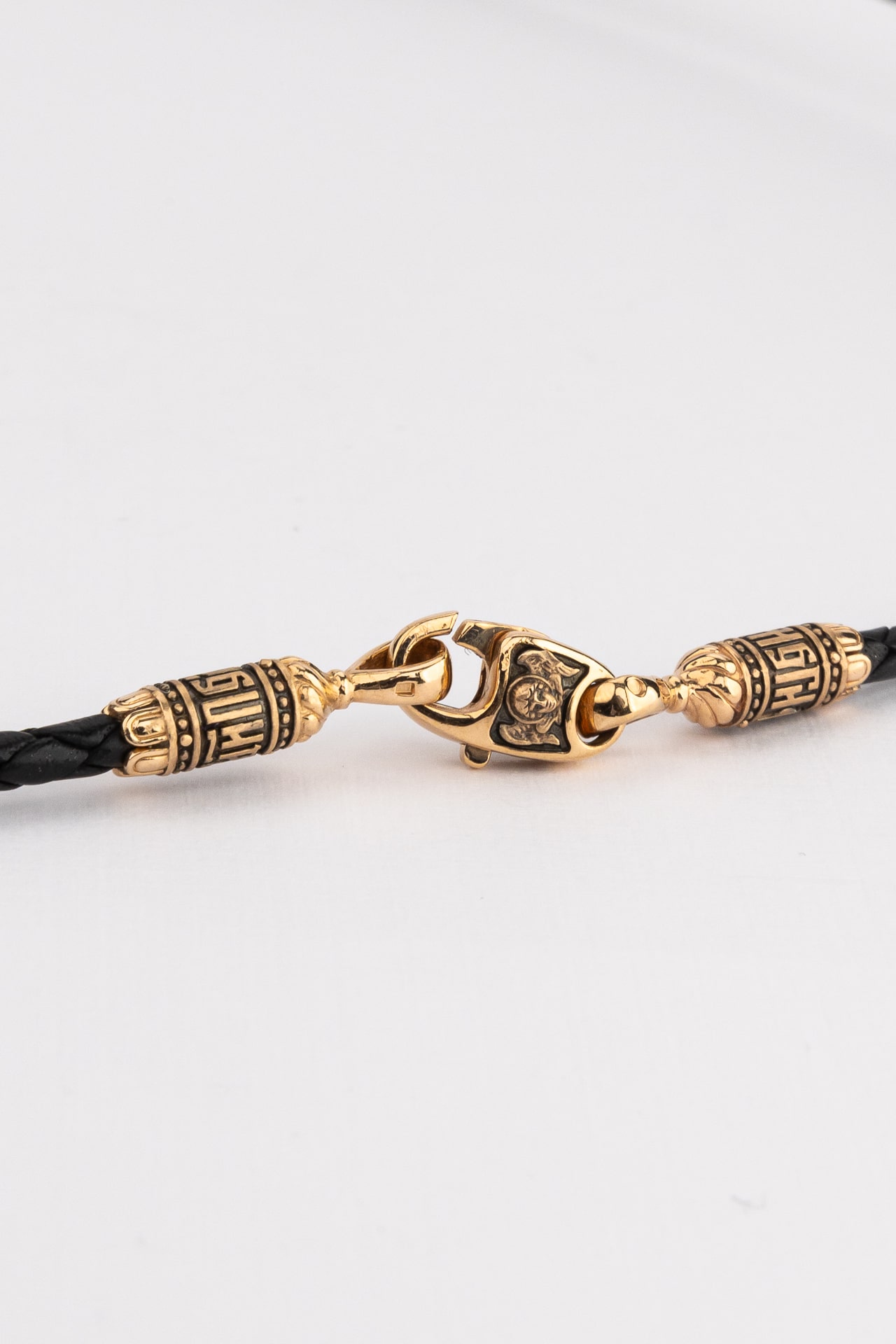 На концах цепи-шнурка расположены концевики с надписью: «Спаси и сохрани». Соединяет концевики замочек-карабин в форме рыбки. На замочке изображен шестикрылый Серафим.