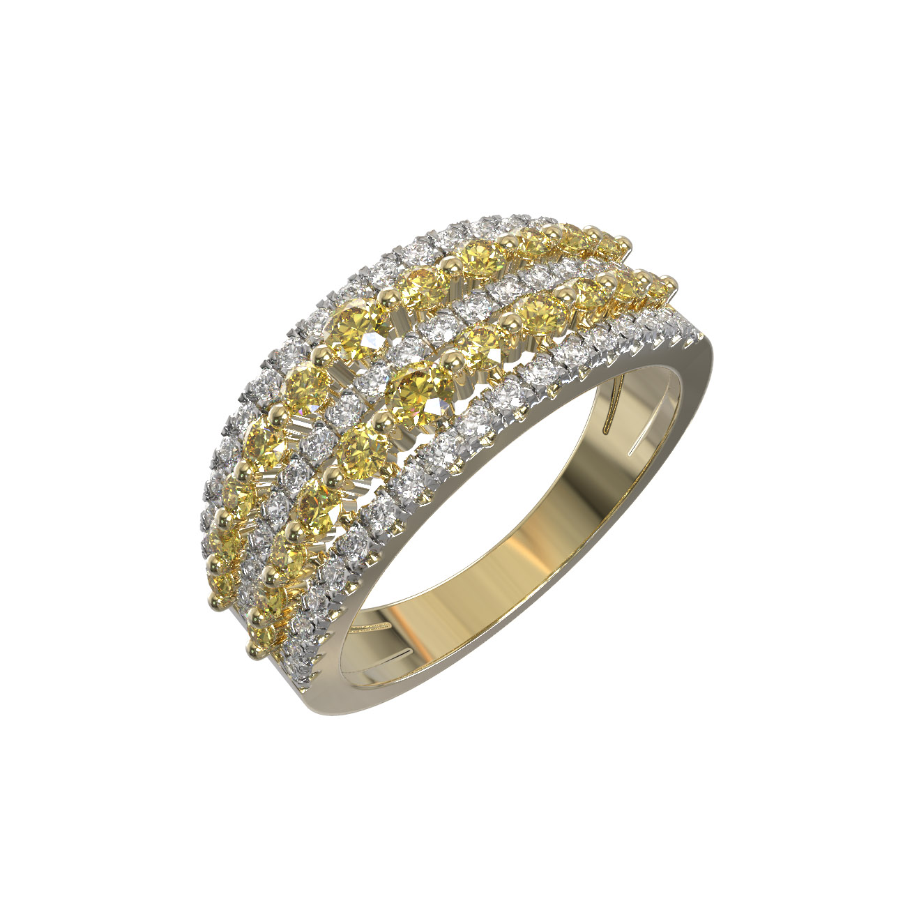 Кольцо из лимонного золота c бриллиантами и сапфиром