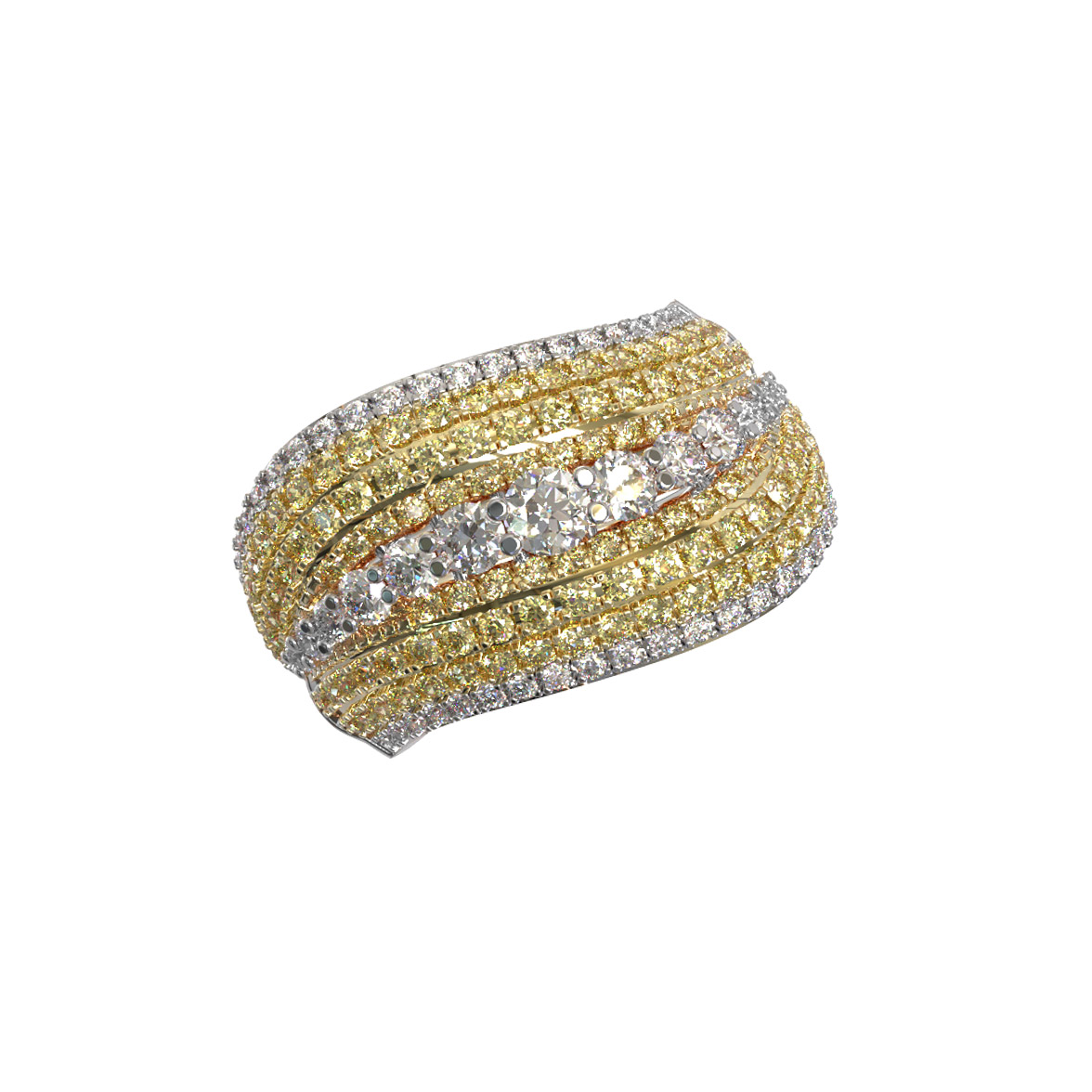 Кольцо из лимонного золота c бриллиантами и сапфиром