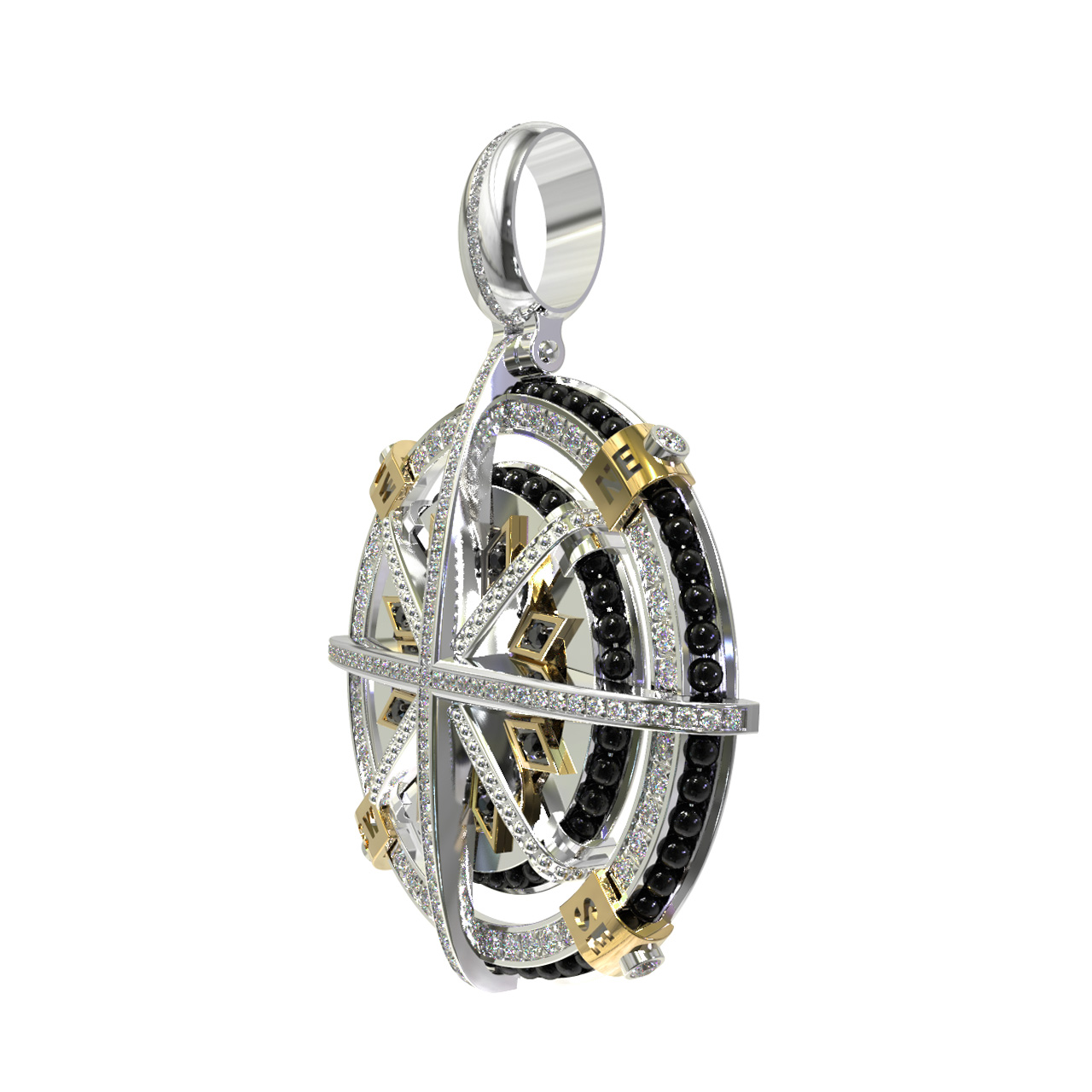 Подвеска из белого золота c эмалью, бриллиантами и ониксом