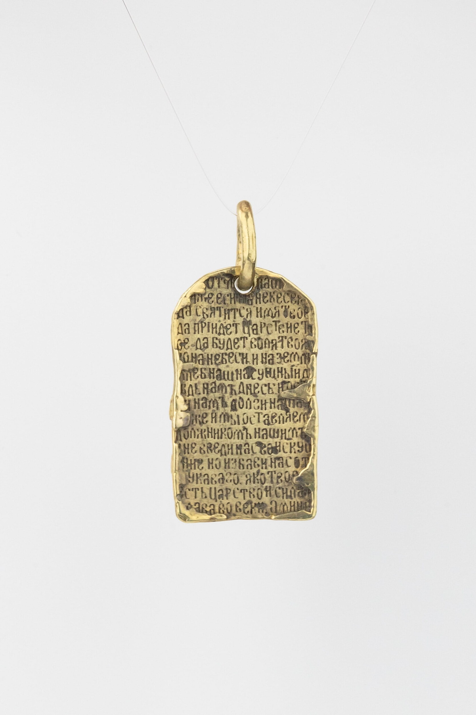 «Отче наш, Иже еси на небесех! Да святится имя Твое, да приидет Царствие Твое, да будет воля Твоя, яко на небеси и на земли. Хлеб наш насущный даждь нам днесь; и остави нам долги наша, якоже и мы оставляем должником нашим; и не введи нас во искушение, но избави нас от лукаваго. Яко Твое есть Царство и сила, и слава во веки. Аминь.»