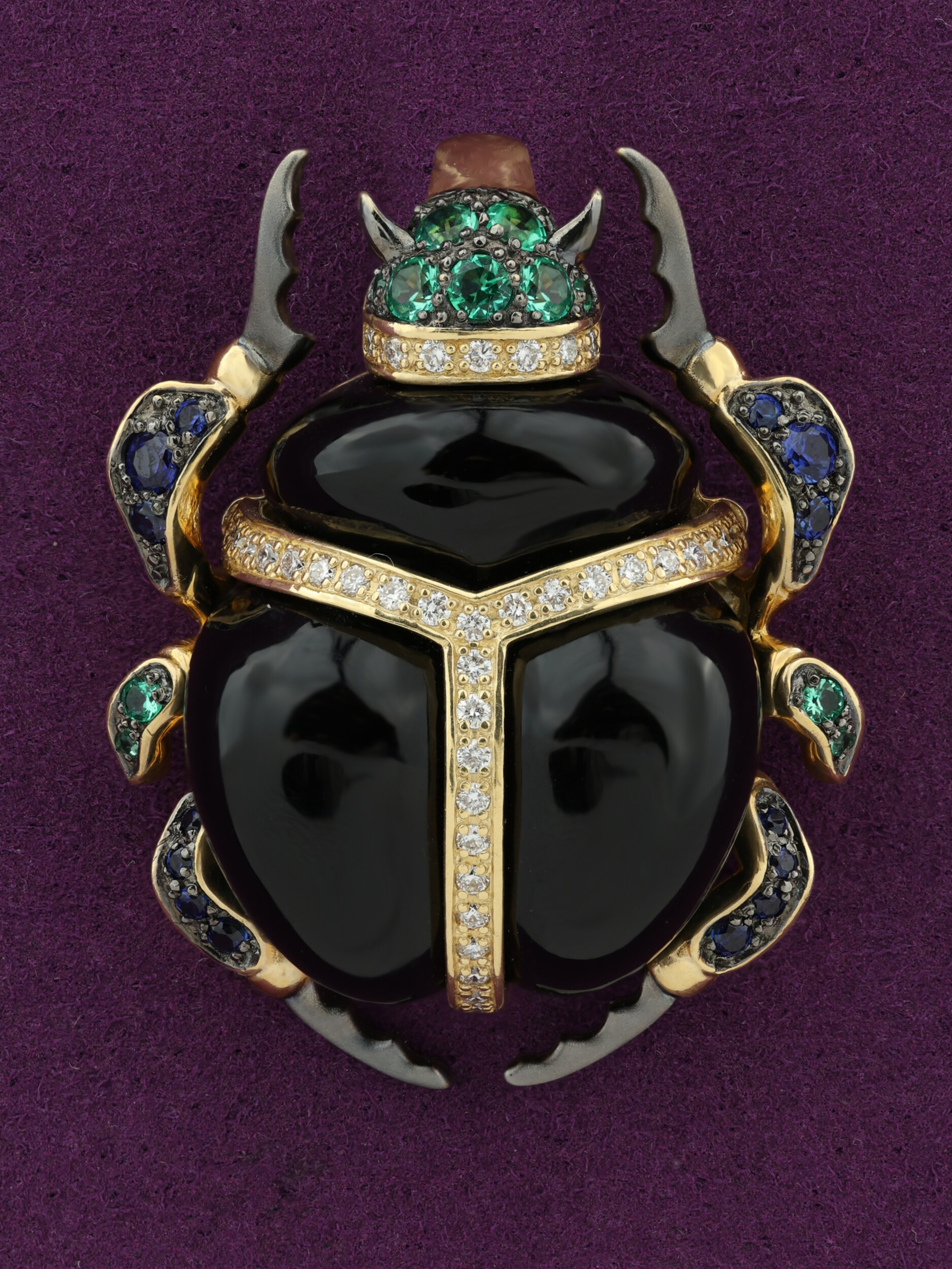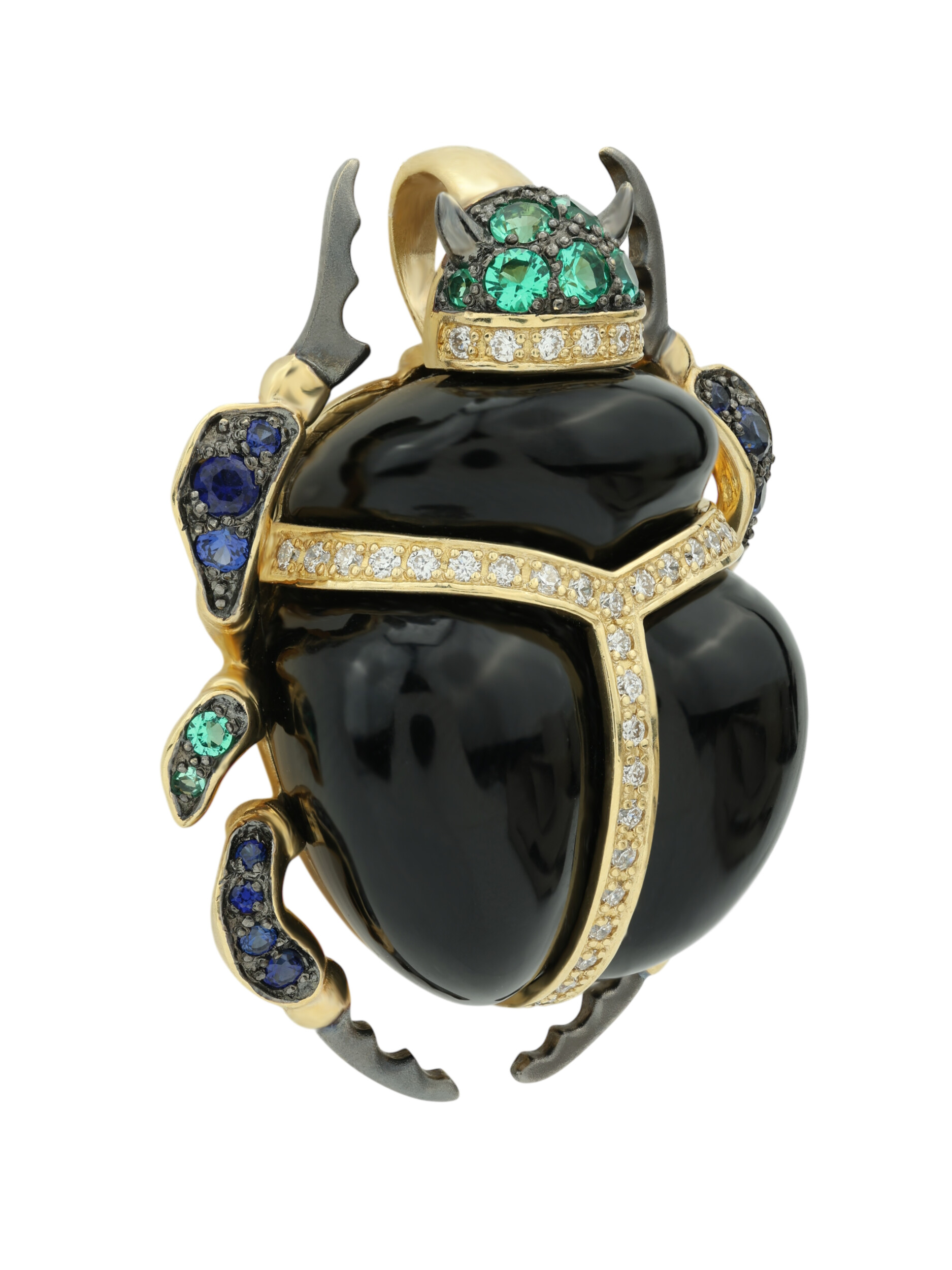 Подвеска из лимонного золота c бриллиантами, сапфиром, изумрудом, ониксом и изумрудом