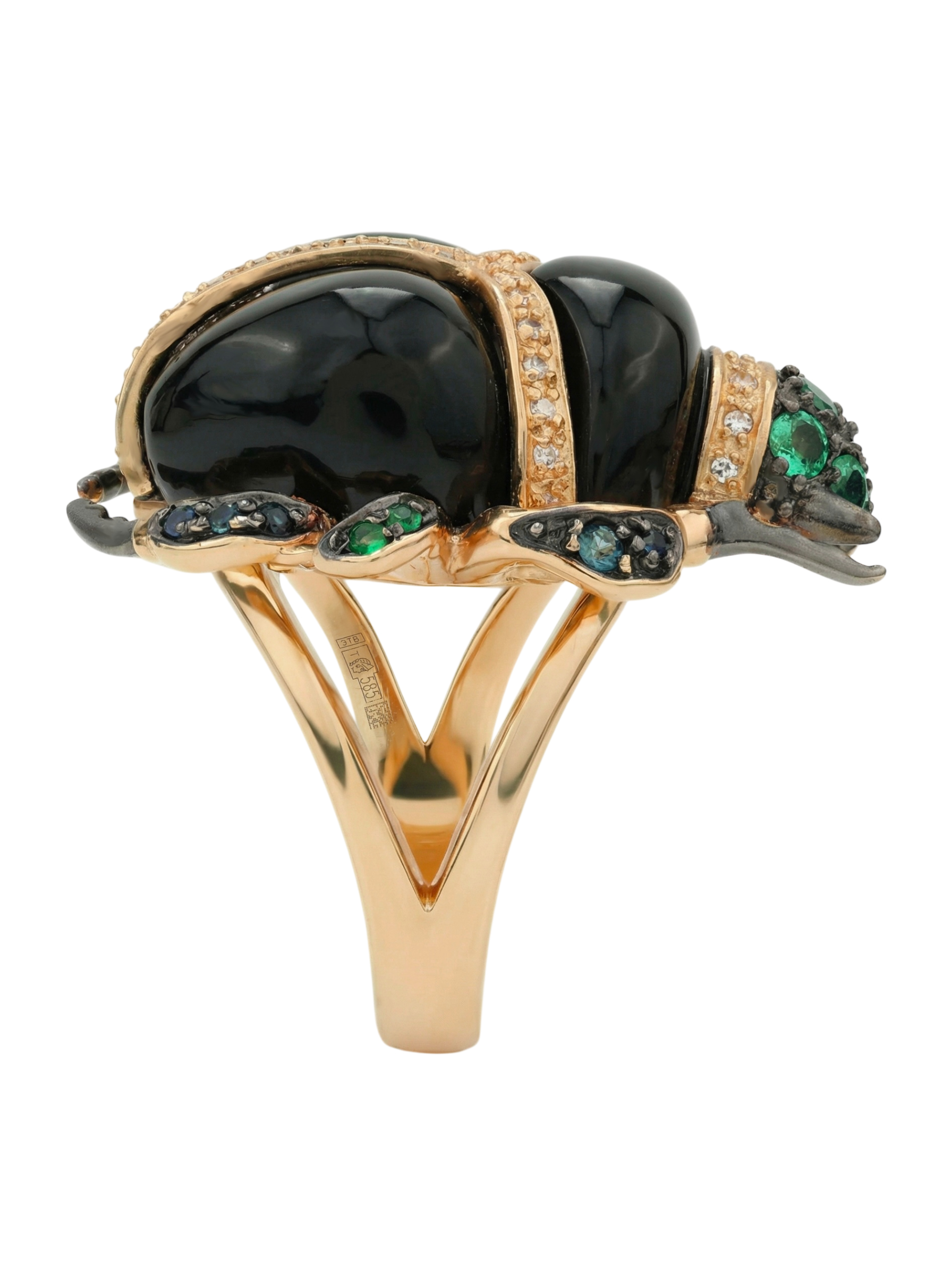 Кольцо из золота c бриллиантами, сапфиром, изумрудом и ониксом