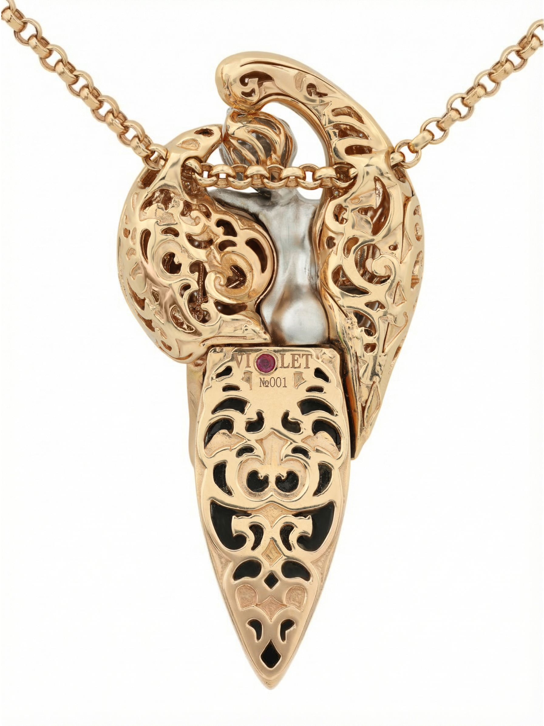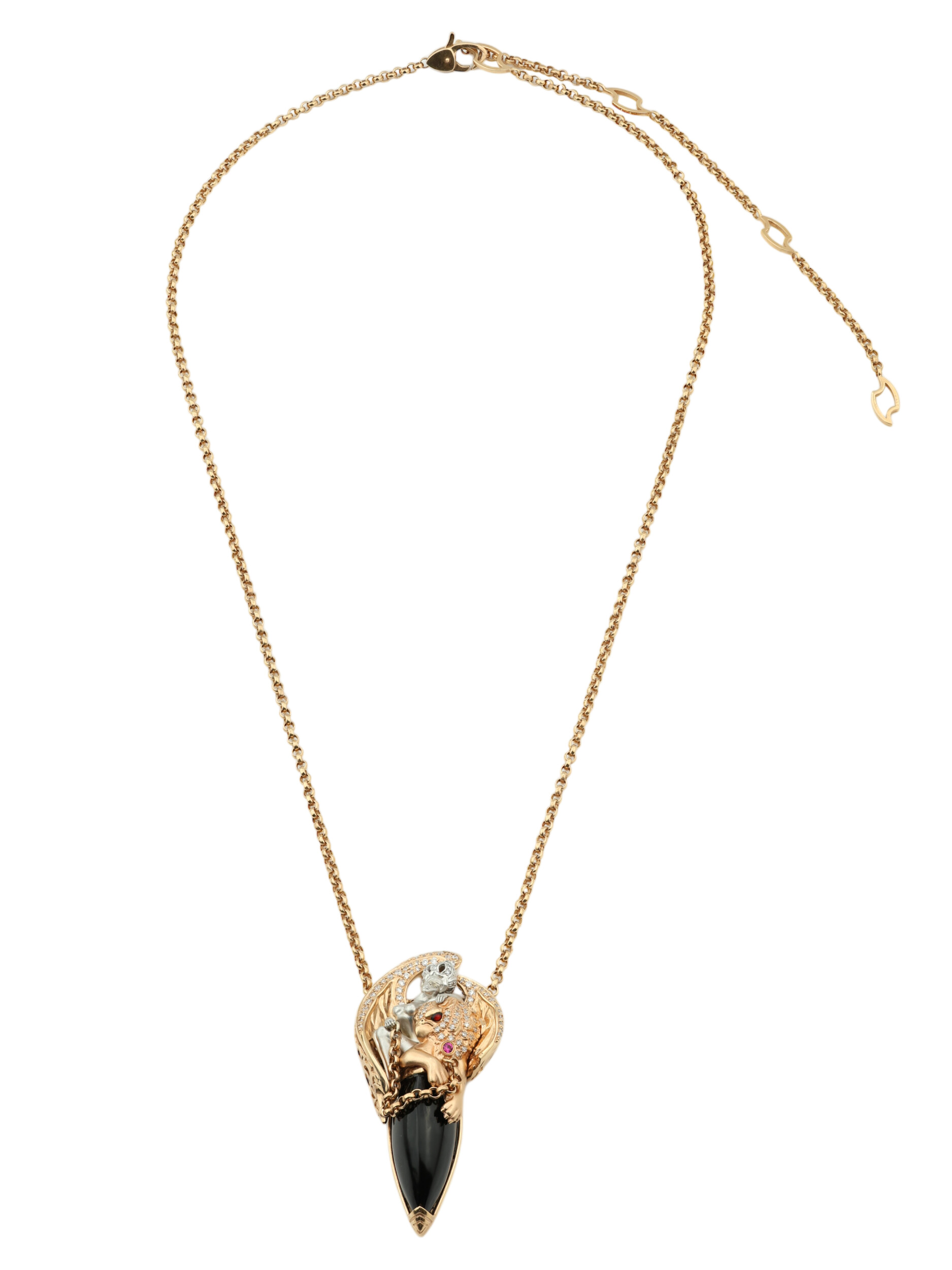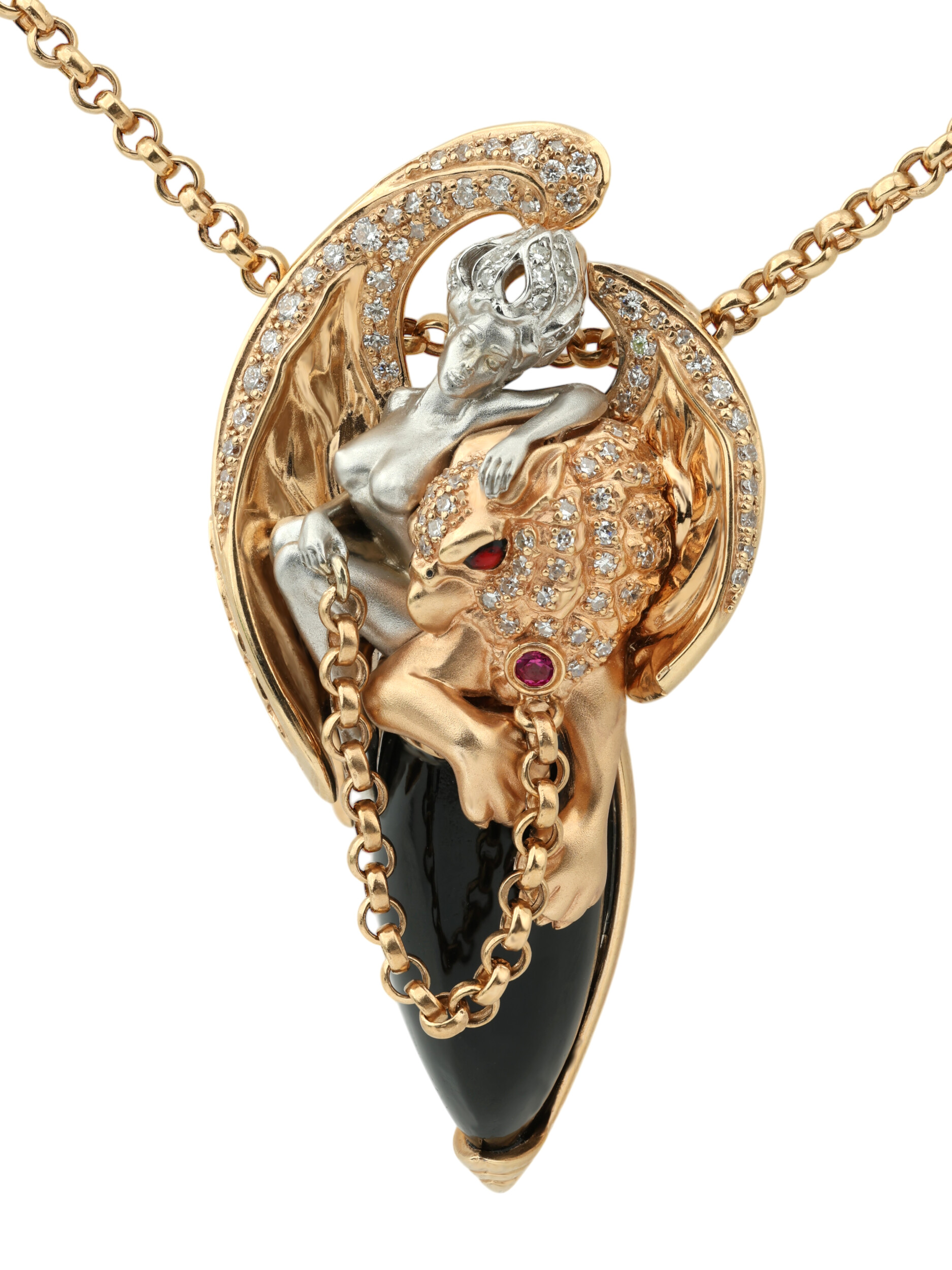 Колье из золота c эмалью, бриллиантами, рубином и ониксом