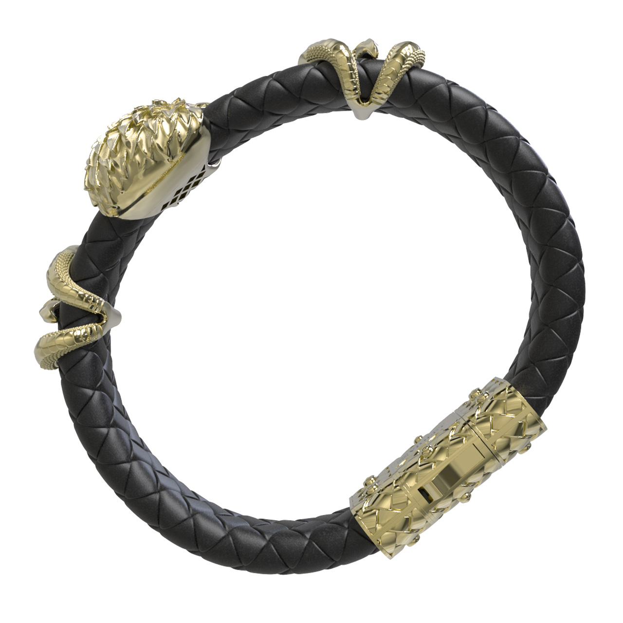 Браслет из лимонного золота c бриллиантами и кожаным шнурком
