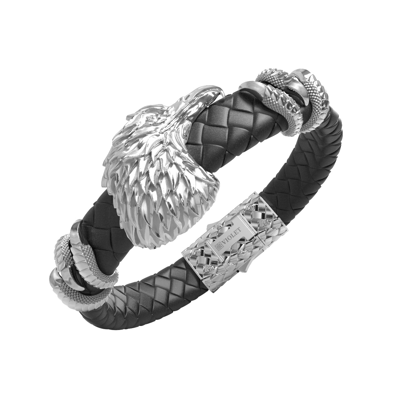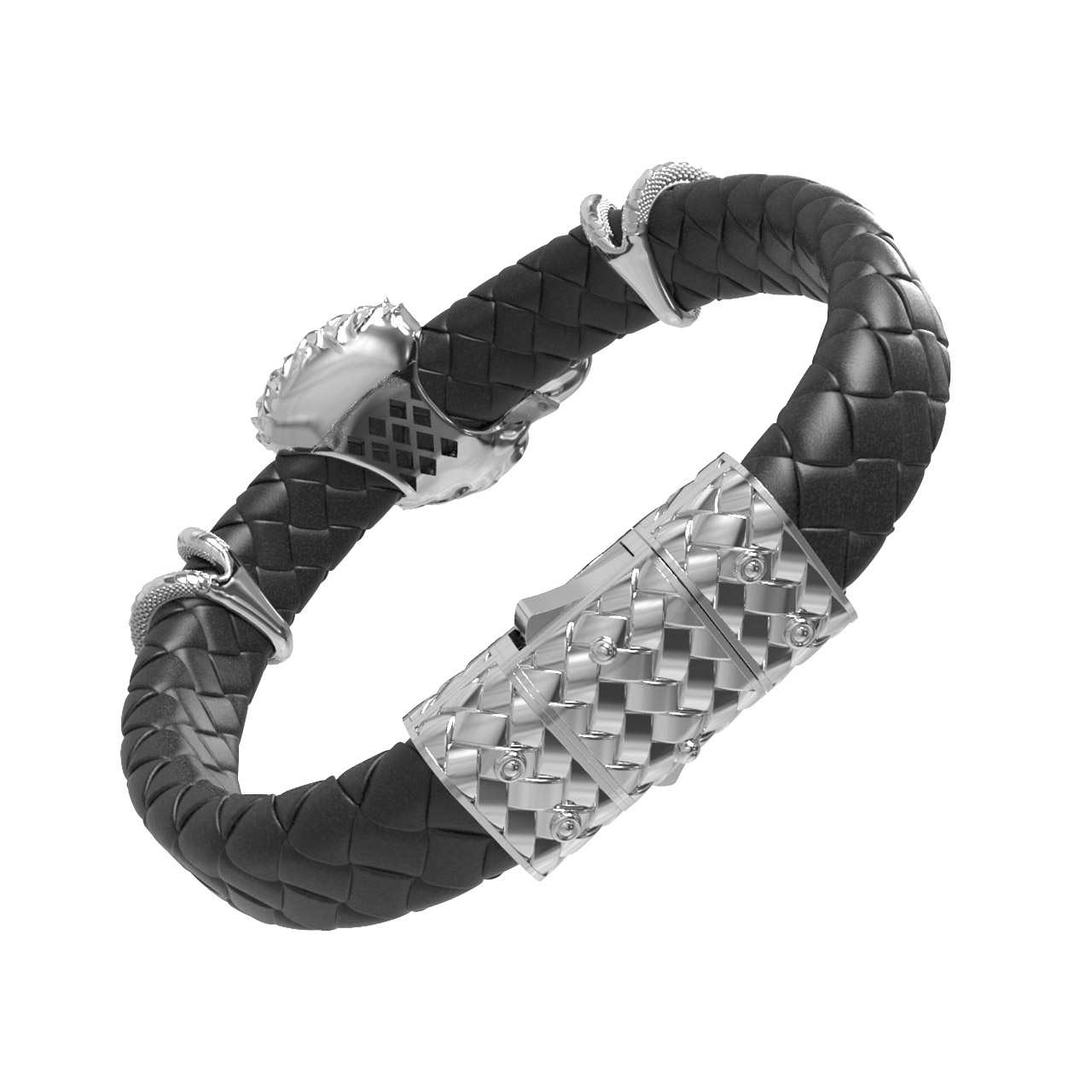 Браслет из белого золота c бриллиантами и кожаным шнурком