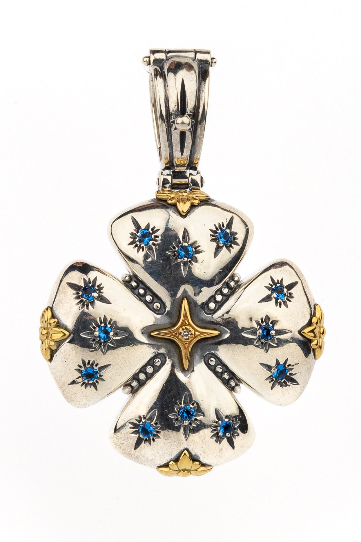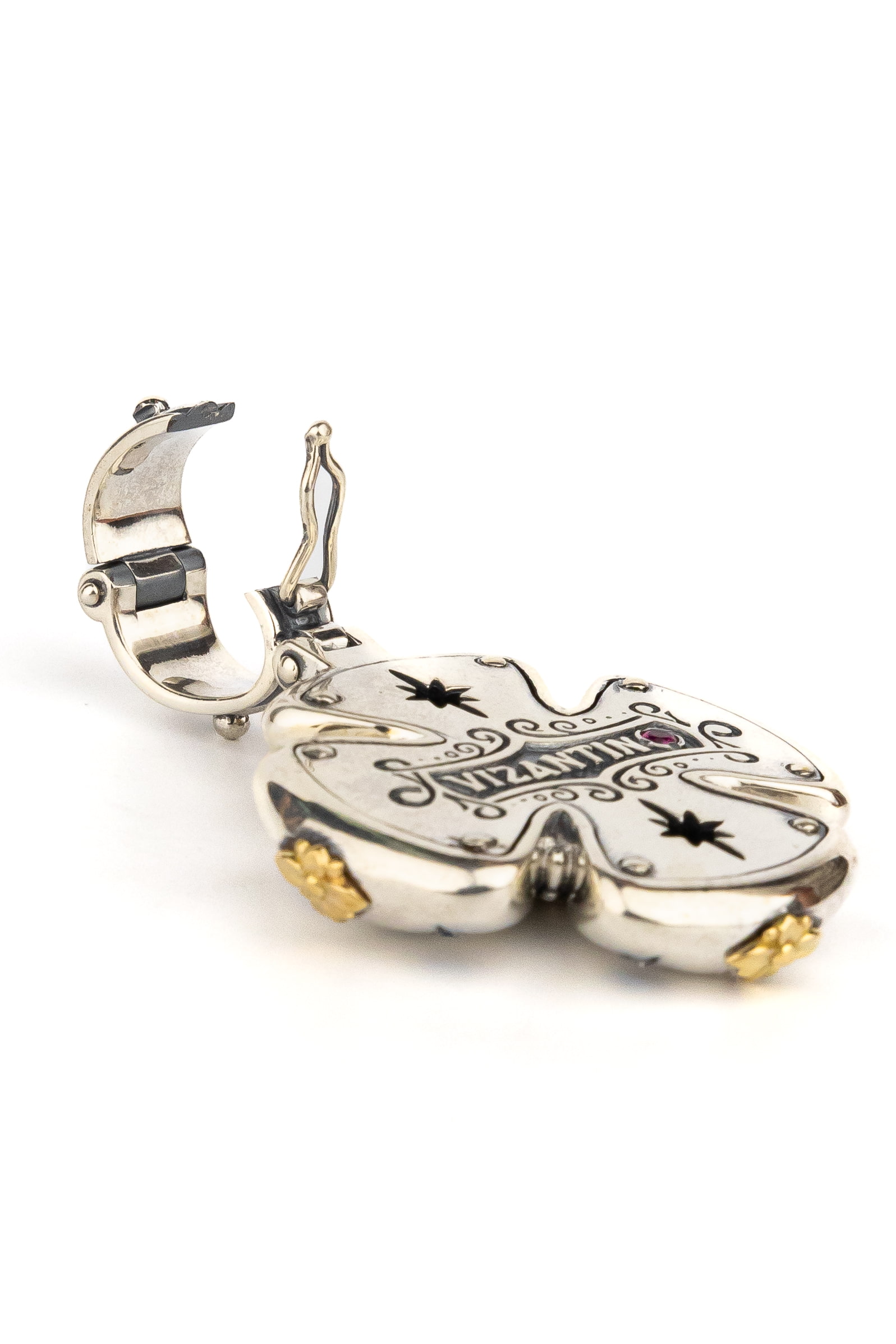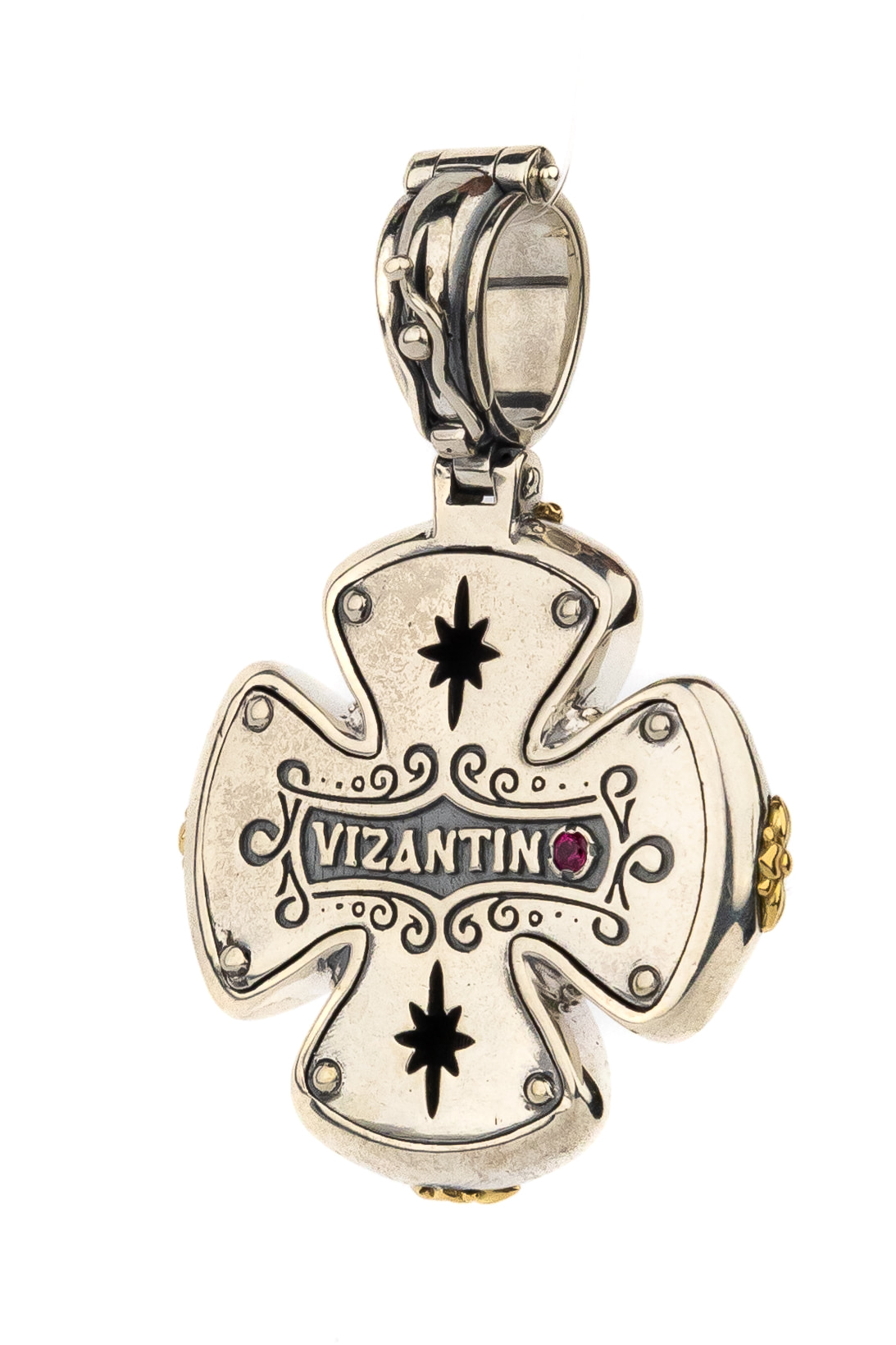 Крест из серебра и золота c фианитом, бриллиантами и рубином